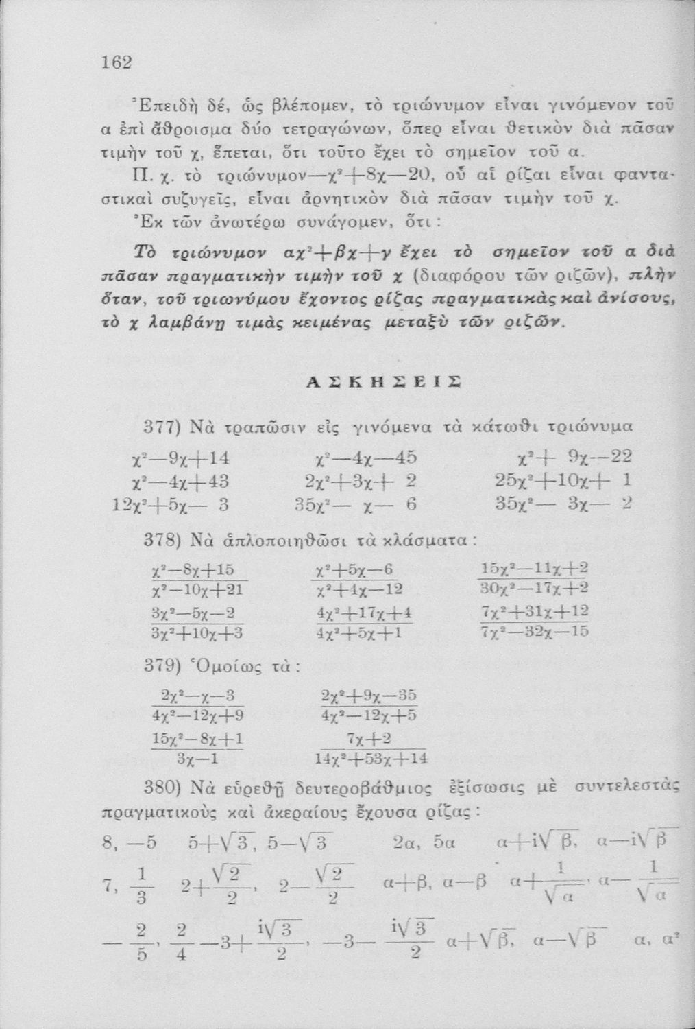 Σχολικό εγχειρίδιο Άλγεβρας Γυμνασίου που περιλαμβάνει θεωρία και ασκήσεις.