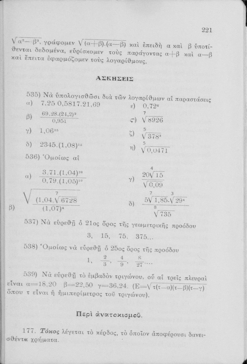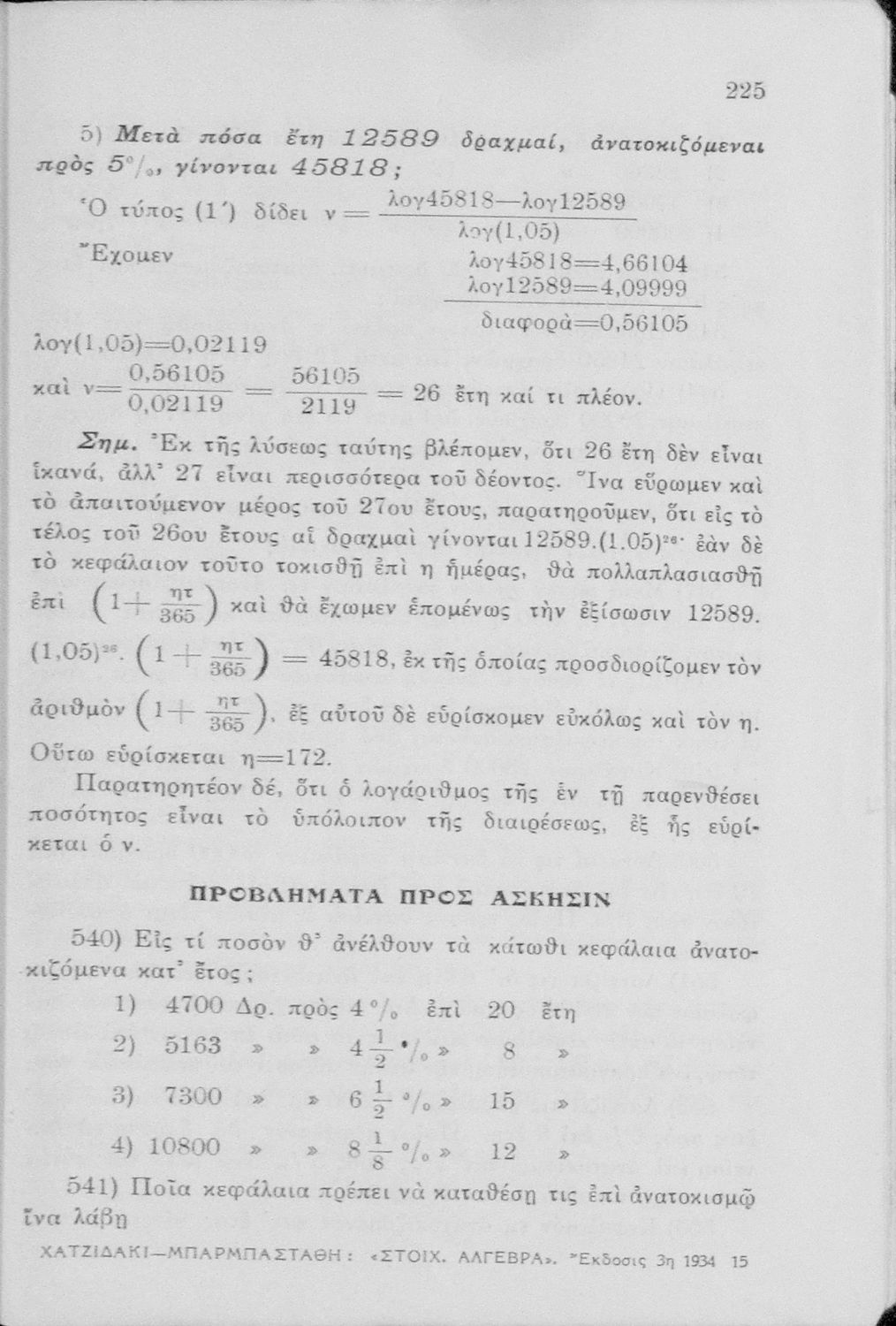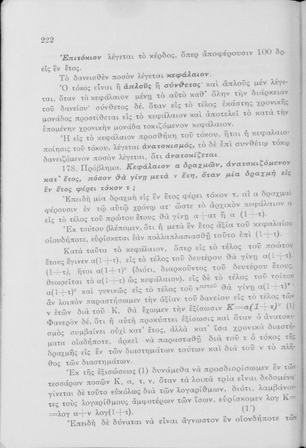 Σχολικό εγχειρίδιο Άλγεβρας Γυμνασίου που περιέχει θεωρία και ασκήσεις. Ο συγγραφέας ήταν υφηγητής στο Εθνικό Πανεπιστήμιο.