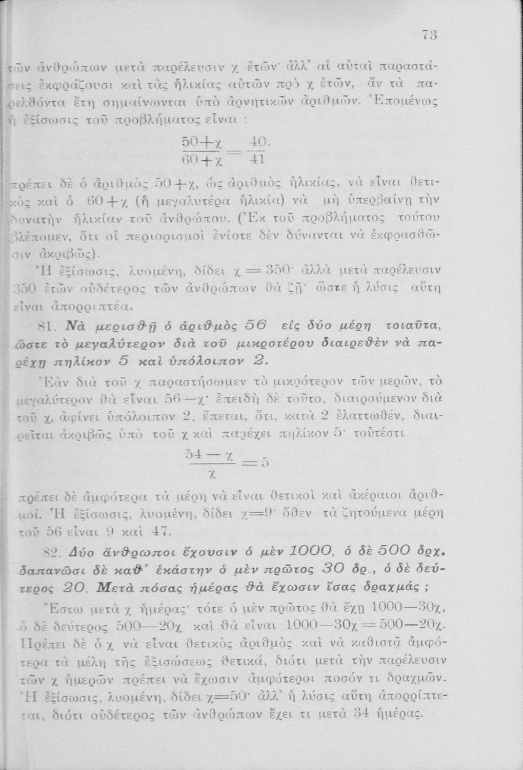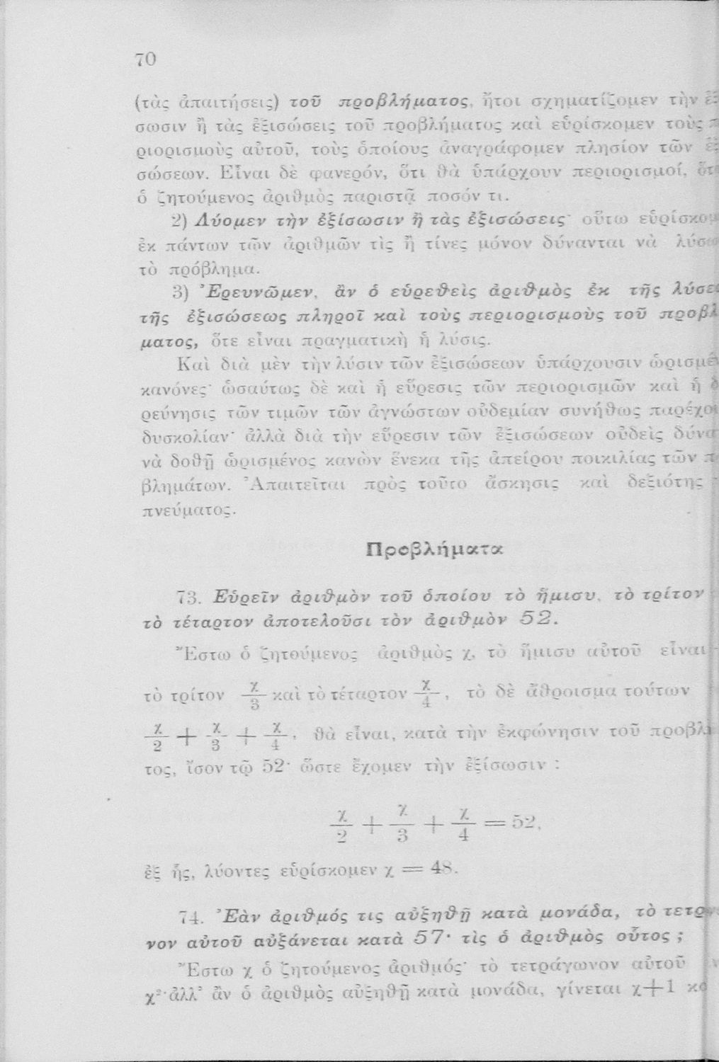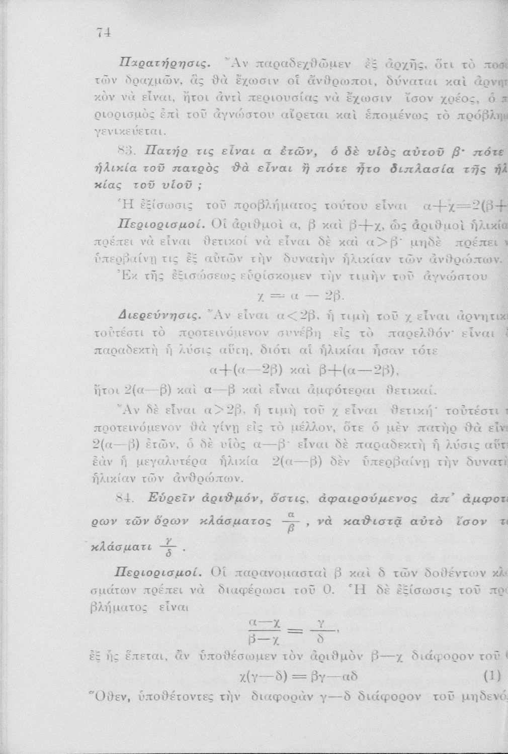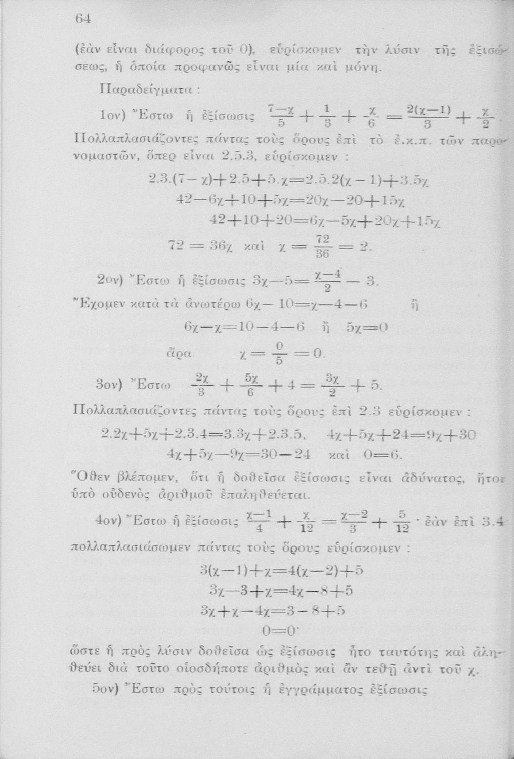 Σχολικό εγχειρίδιο Άλγεβρας Γυμνασίου που περιέχει θεωρία και ασκήσεις. Ο συγγραφέας ήταν υφηγητής στο Εθνικό Πανεπιστήμιο.