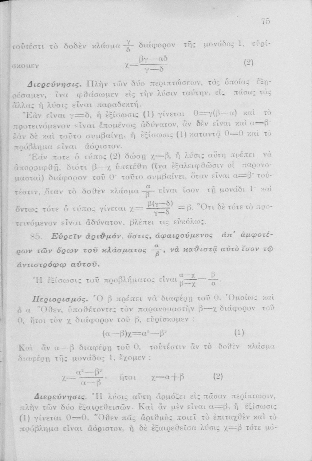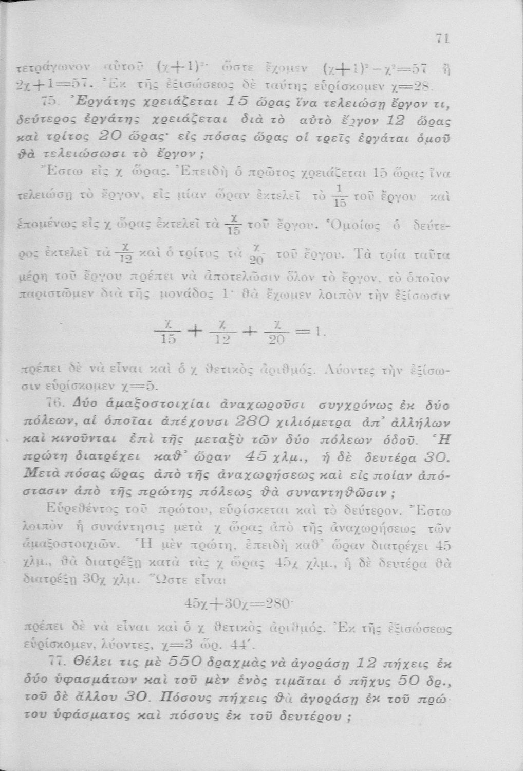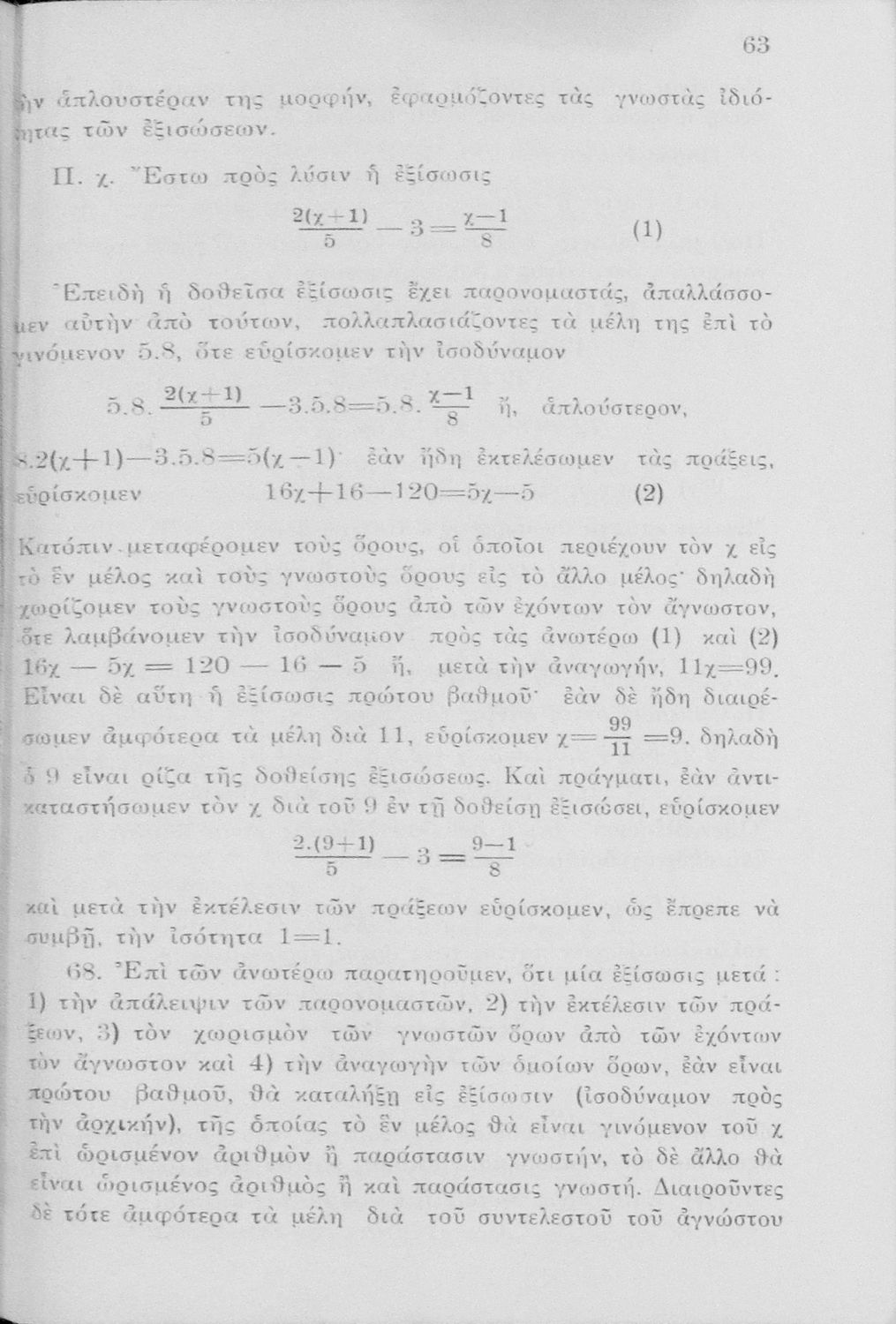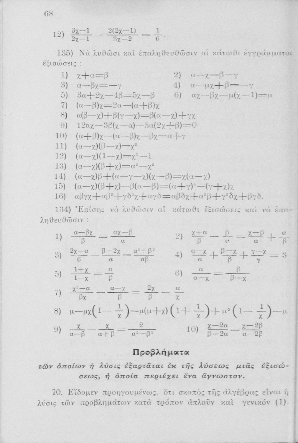 Σχολικό εγχειρίδιο Άλγεβρας Γυμνασίου που περιέχει θεωρία και ασκήσεις. Ο συγγραφέας ήταν υφηγητής στο Εθνικό Πανεπιστήμιο.
