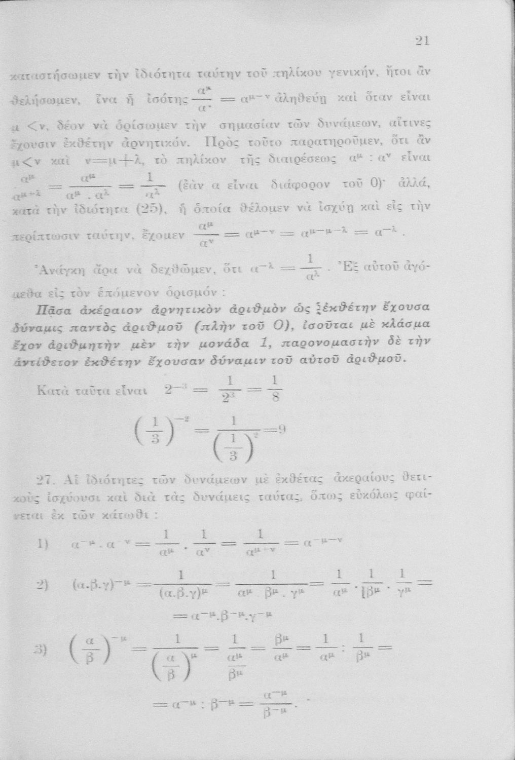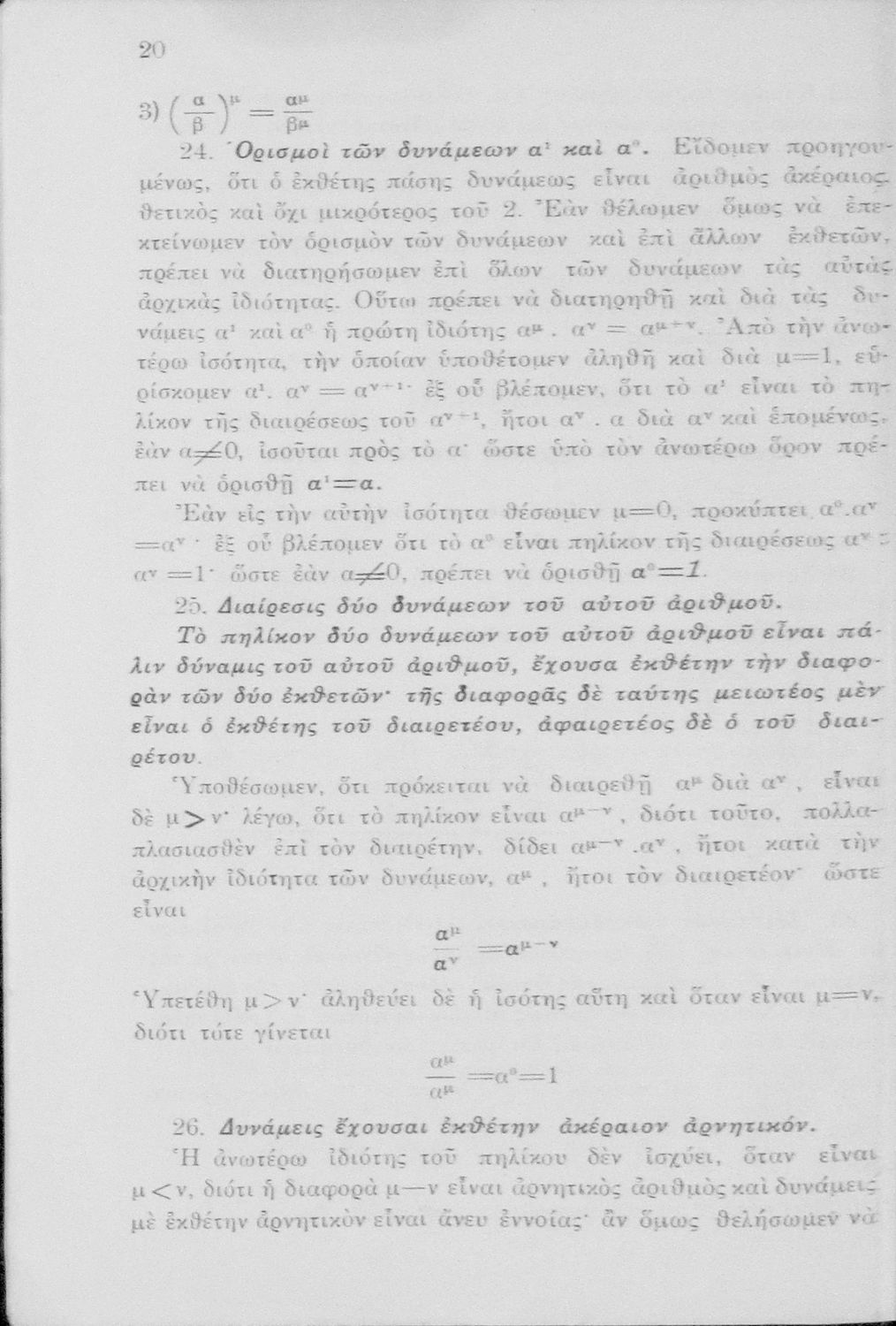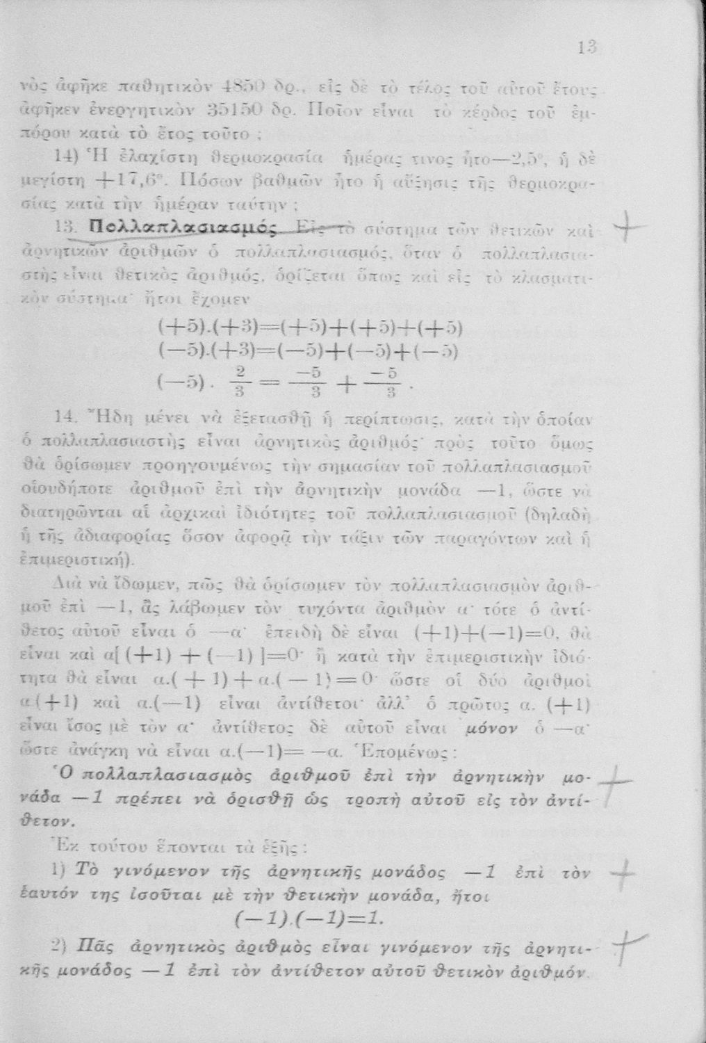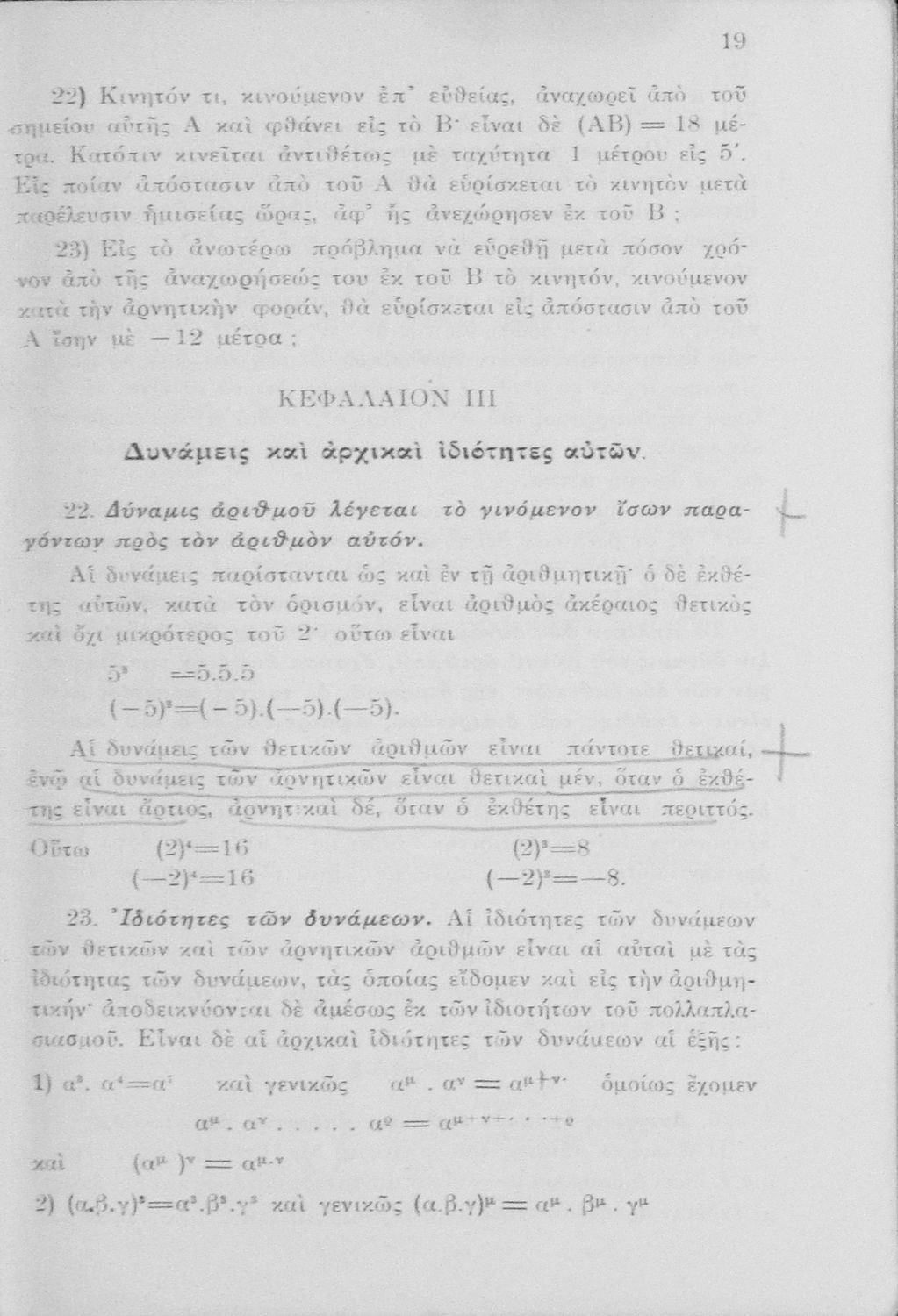 Σχολικό εγχειρίδιο Άλγεβρας Γυμνασίου που περιέχει θεωρία και ασκήσεις. Ο συγγραφέας ήταν υφηγητής στο Εθνικό Πανεπιστήμιο.