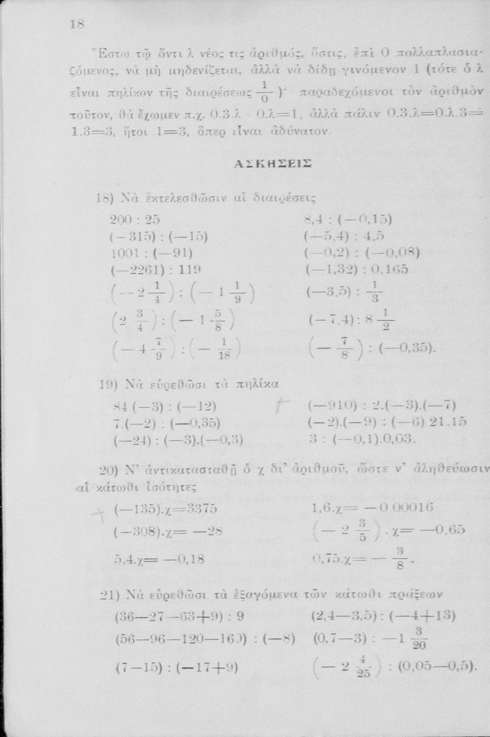 Σχολικό εγχειρίδιο για τις τάξεις του Γυμνασίου για το μάθημα των Μαθηματικών και συγκεκριμένα της Άλγεβρας. Το εγχειρίδιο περιλαμβάνει εισαγωγικά γενικές πληροφορίες για τις 4 βασικές πράξεις συνεχίζει με τις