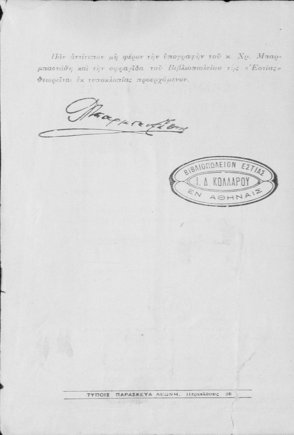 Συγγραφέας: Ιω. Ν. Χατζιδάκις, Χρ. Α. Μπαρμπαστάθης