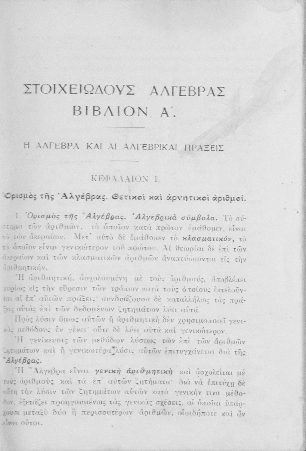 Τίτλος: Στοιχειώδης άλγεβρα προς χρήσιν των Γυμνασίων συμφώνος προς το νέον πρόγραμμα