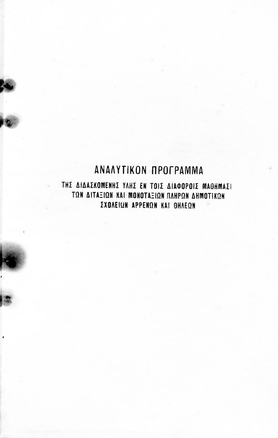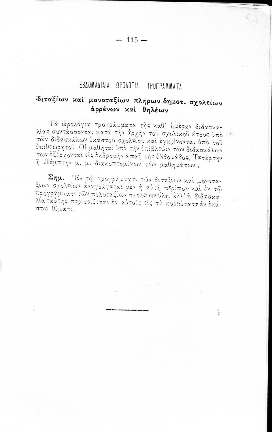 Τίτλος: Προγράμματα Ωρολόγια και Αναλυτικά παντός είδους πληρών Δημοτικών Σχολείων Αρρένων και Θηλέων.