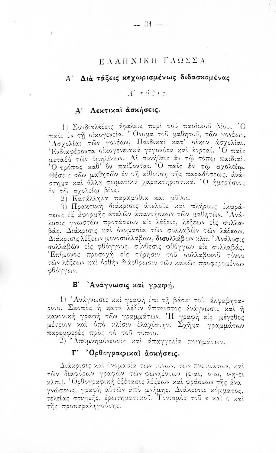 Τίτλος: Προγράμματα Ωρολόγια και Αναλυτικά παντός είδους πληρών Δημοτικών Σχολείων Αρρένων και Θηλέων.