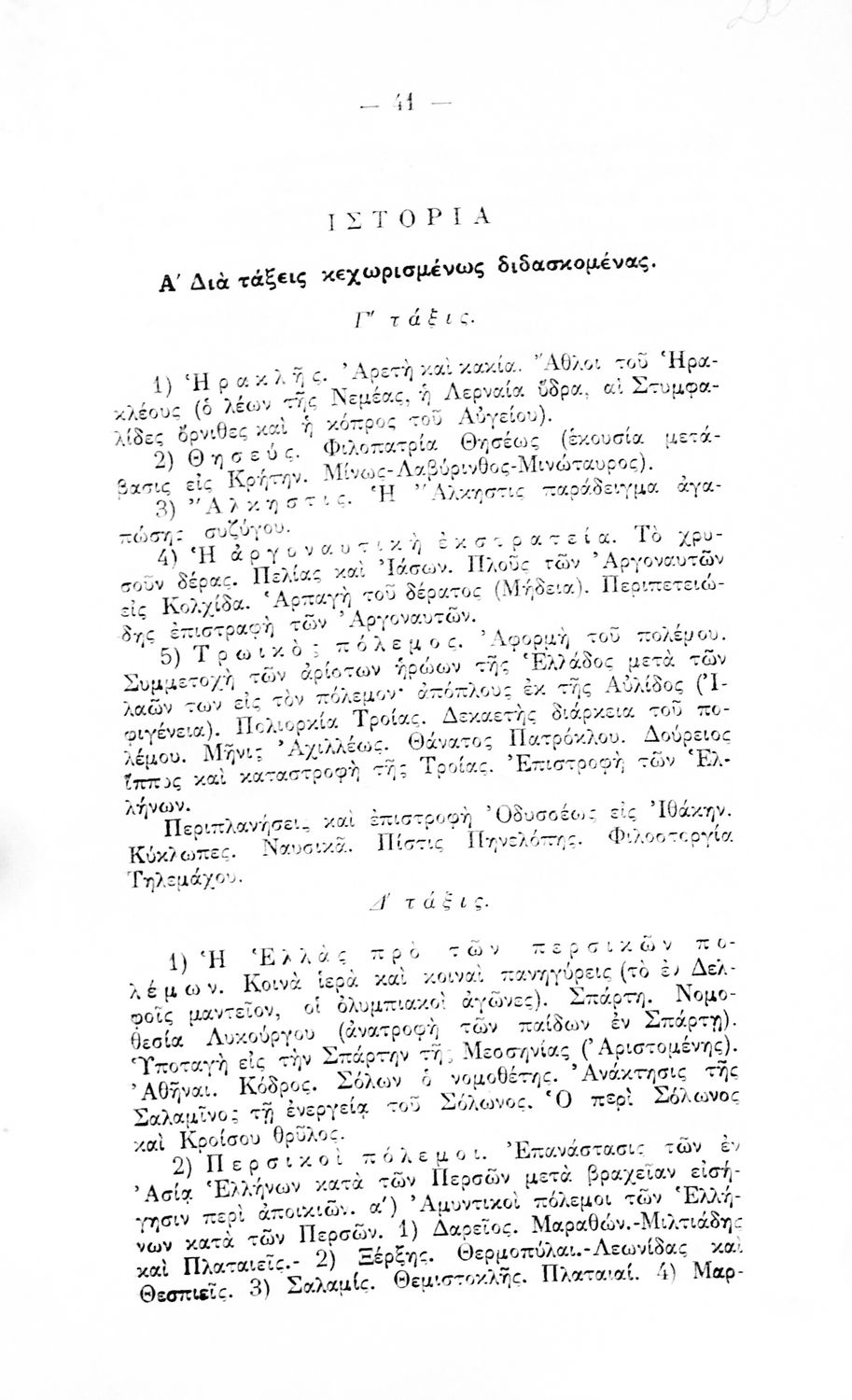 Αναλυτικό πρόγραμμα του τετρατάξιου Δημοτικού Σχολείου των θηλέων. Το πρόγραμμα αναφέρεται σε τετρατάξια ως μονοτάξια Δημοτικά Σχολεία θηλέων. Κοσμείται στο εξώφυλλο από το βασιλικό στέμμα. Περιέχει και τους ...