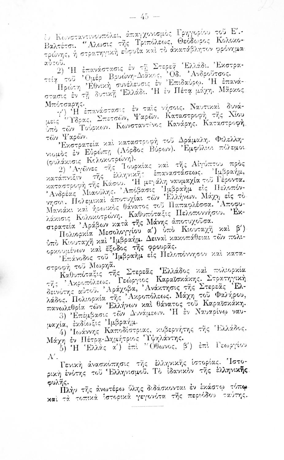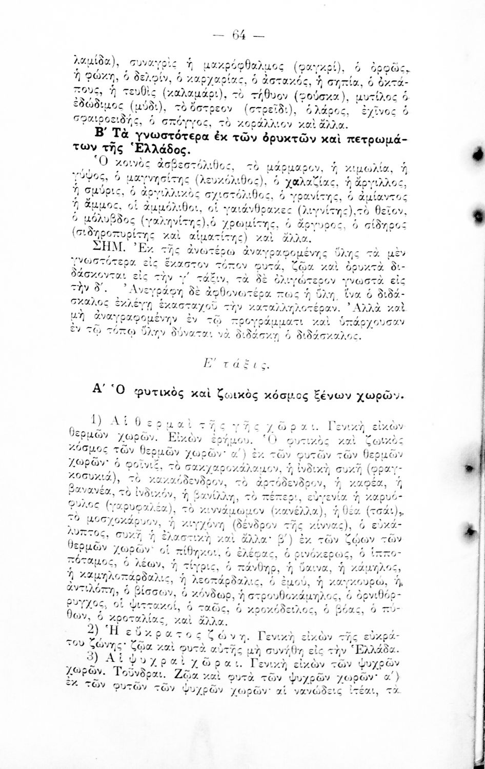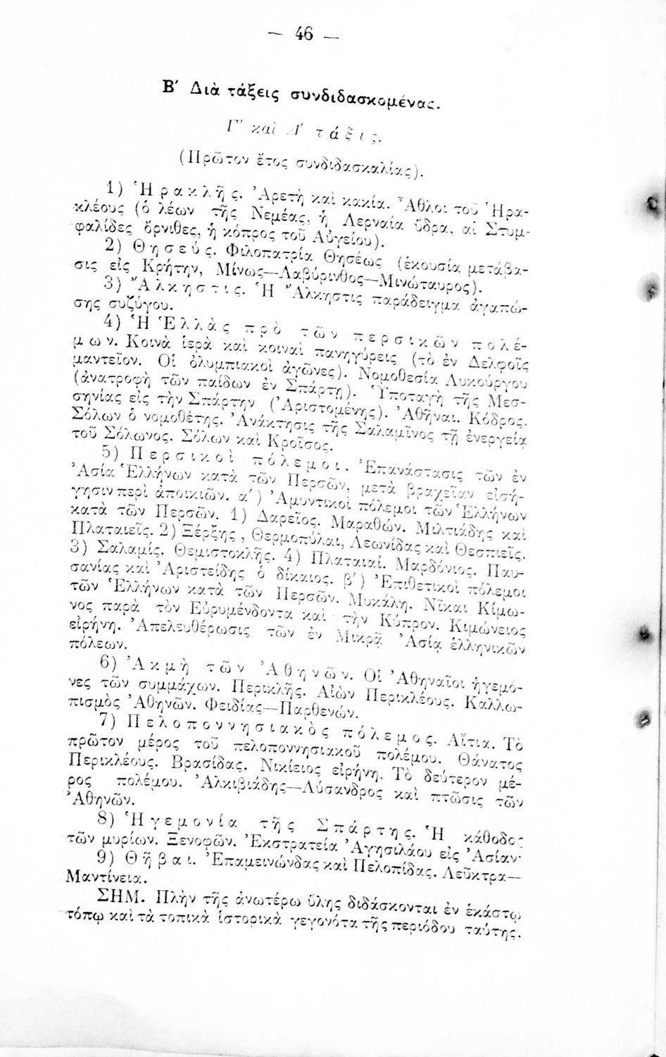 Αναλυτικό πρόγραμμα που υπογράφεται από τον Βασιλιά Κωνσταντίνο. Σε χειρόγραφη σημείωση στο εσωτερικό του αναφέρεται ότι πρόκειται για Το Ωρολόγιο και Αναλυτικό Πρόγραμμα των Δημοτικών που δημοσιεύτηκε στο ΦΕΚ 174/Α/19/3. Το σύγγραμμα εκδόθηκε από το Υπουργείο των Εκκλησιαστικών και της Δημόσιας Εκπαιδεύσεως.