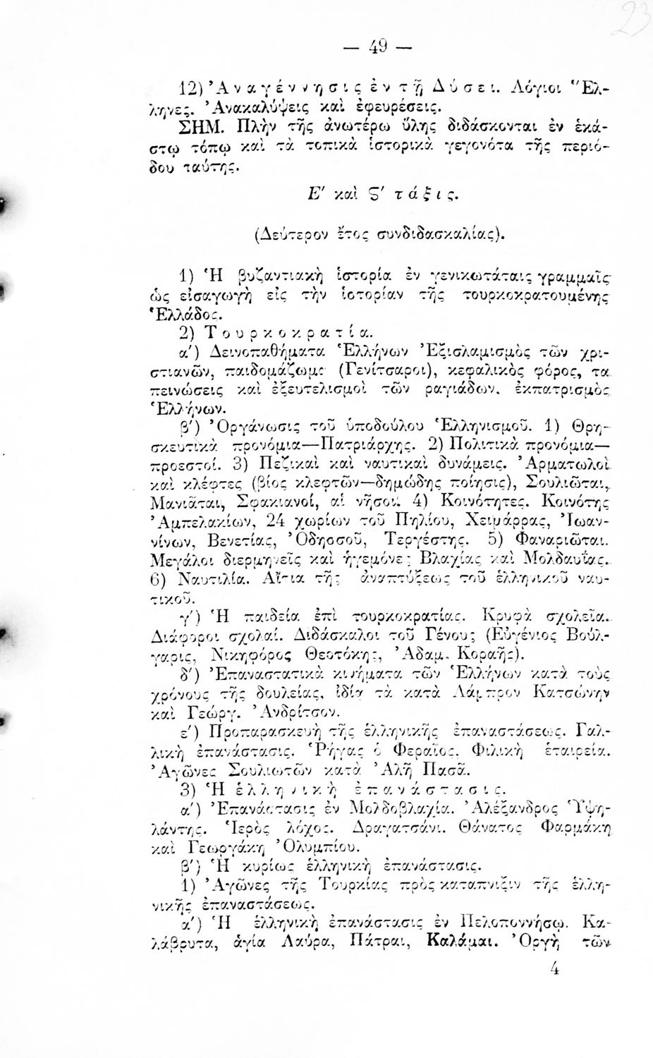 Αναλυτικό πρόγραμμα του τετρατάξιου Δημοτικού Σχολείου των θηλέων. Το πρόγραμμα αναφέρεται σε τετρατάξια ως μονοτάξια Δημοτικά Σχολεία θηλέων. Κοσμείται στο εξώφυλλο από το βασιλικό στέμμα. Περιέχει και τους ...