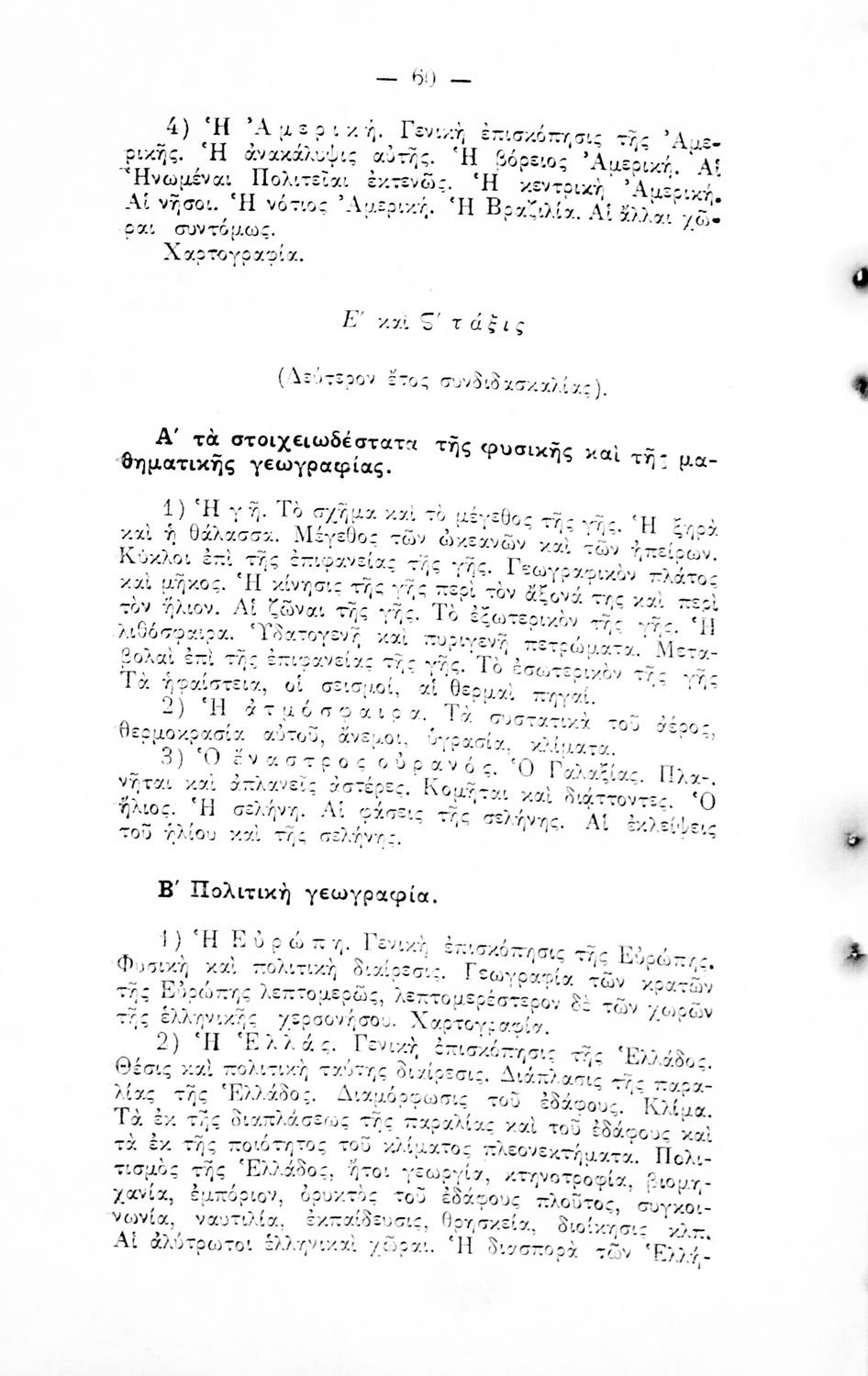 Σχολικό εγχειρίδιο Γεωγραφίας για τις Ε΄ και ΣΤ΄ Δημοτικού που περιλαμβάνει στοιχεία μαθηματικής και φυσικής γεωγραφίας, γεωλογίας και κοσμογραφίας, και εξετάζει την Ελλάδα και ενδεικτικές χώρες από τις πέντε ...