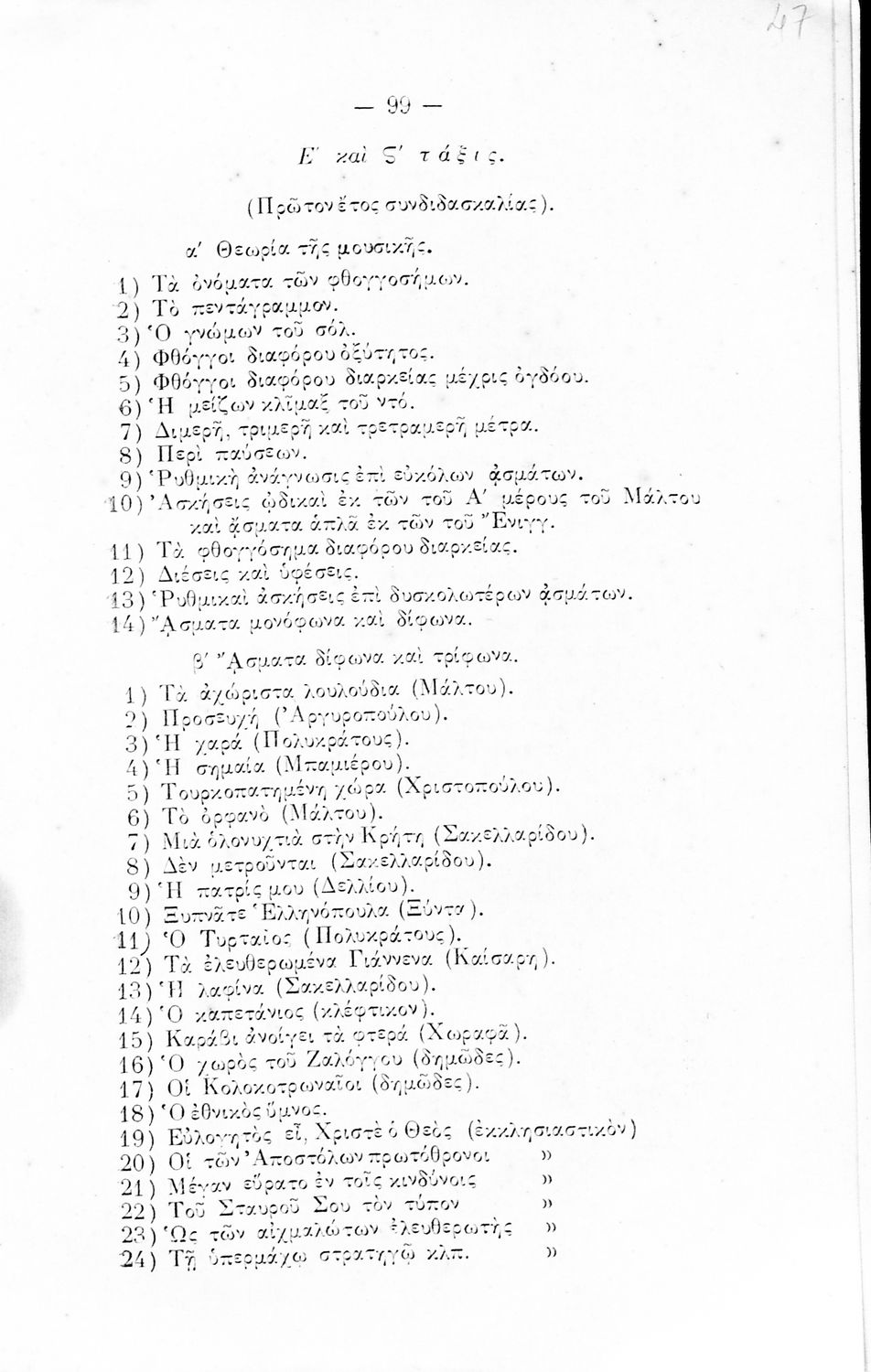 Τάξη:  Β' Ελληνικού Σχολείου / ΣΤ' Δημοτικού Σχολείου