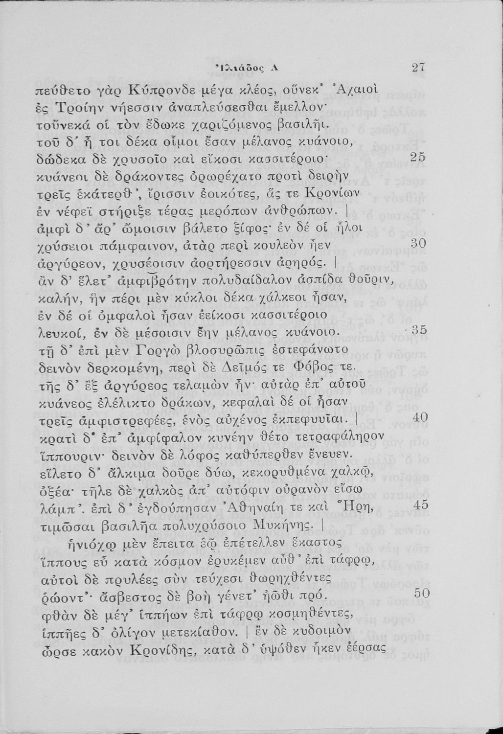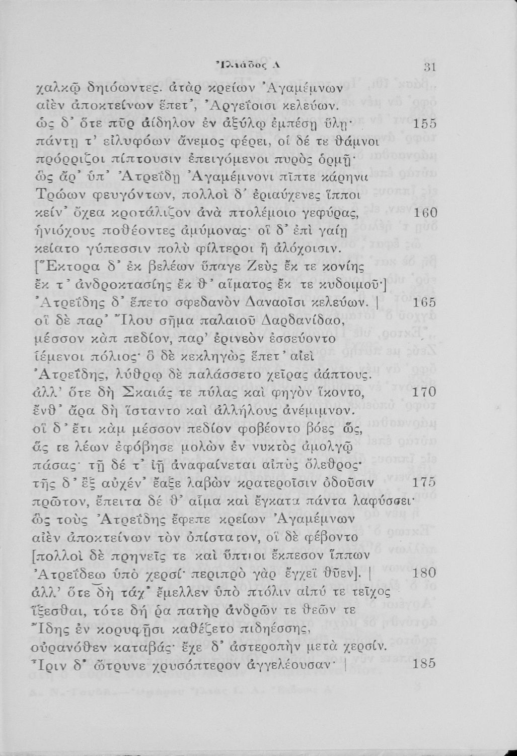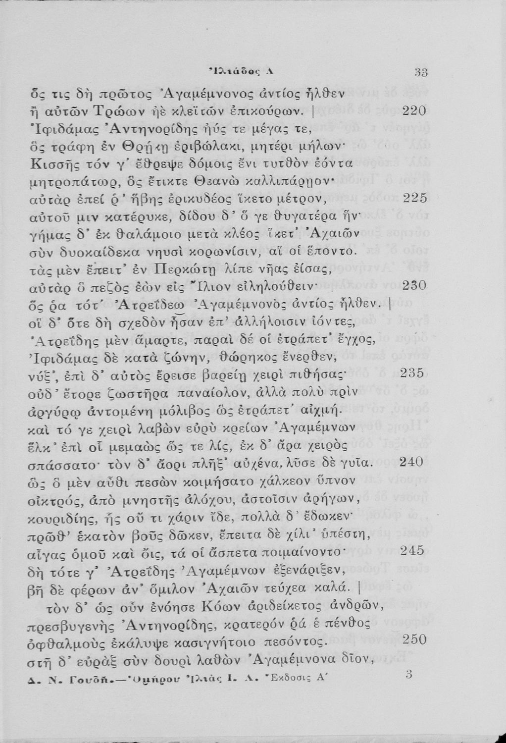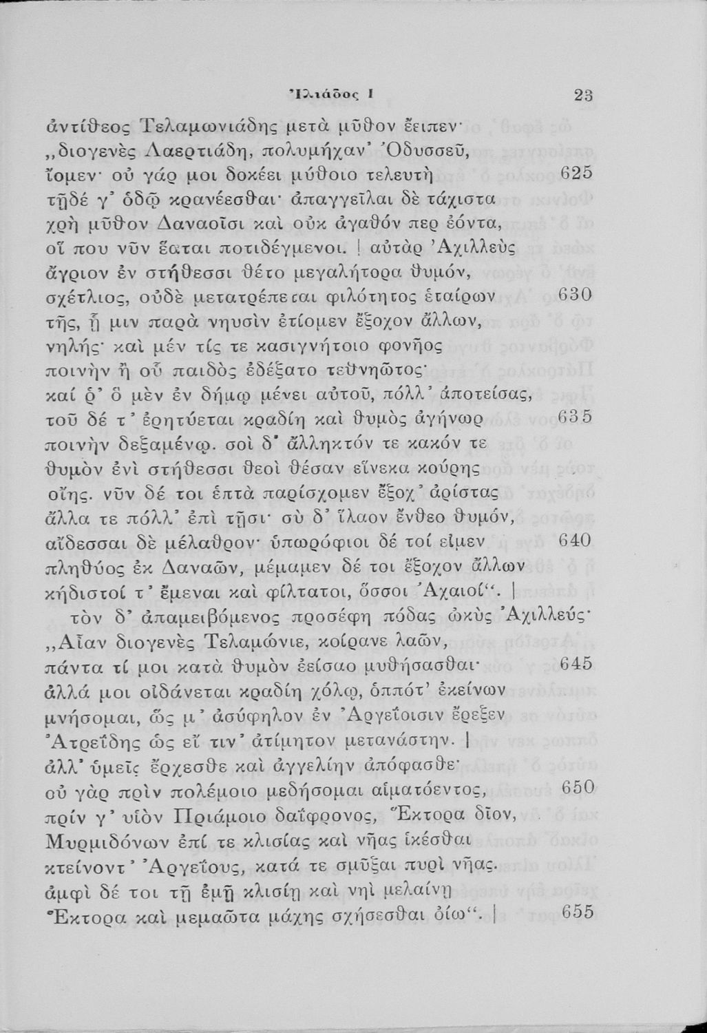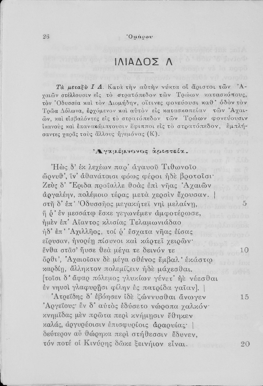Μαθητικό βοήθημα της Ε΄ Γυμνασίου για το μάθημα των Αρχαίων Ελληνικών που περιέχει τις ραψωδίες Ι-Λ της Ιλιάδας και εισαγωγή. Ο συγγραφέας ήταν Διευθυντής στη Βαρβάκειο πρότυπο Σχολή και Γυμνασιάρχης του πρότυπου Κλασσικού Γυμνασίου.