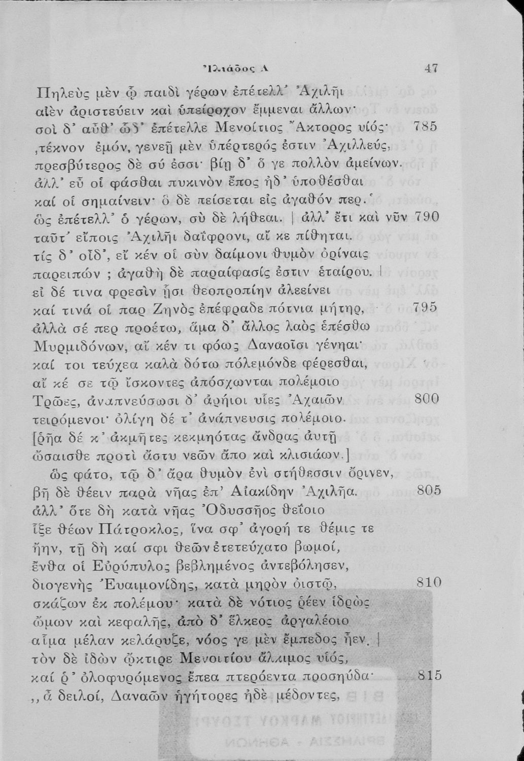 Τίτλος: Ομήρου Ιλιάδα Β εκλογή (Ι-Λ). Προς Χρήσιν των μαθητών της Ε΄ Τάξεως των Εξαταξίων Γυμνασίων