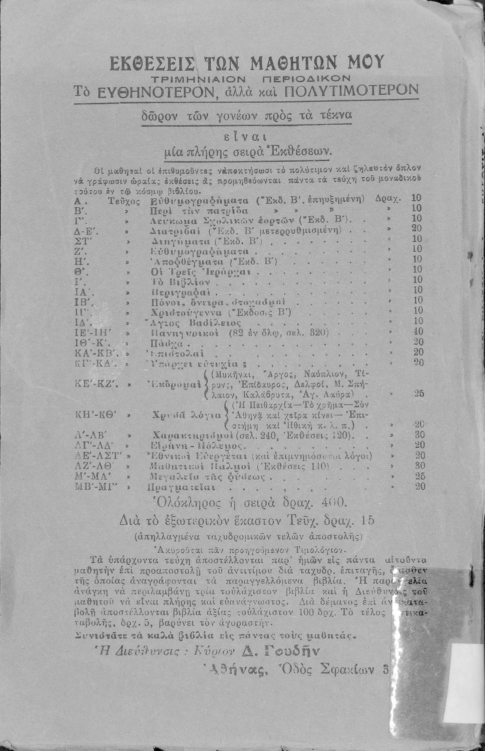 Εκδότης: Τυπογραφείο: Π. Δ. Κυριακού