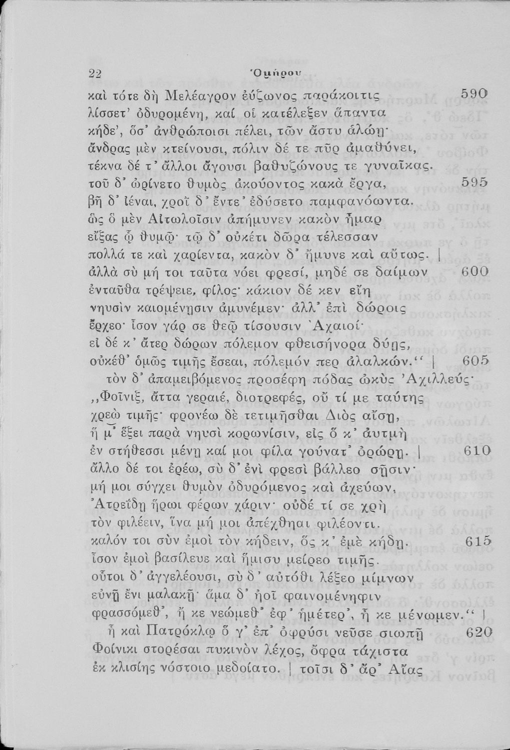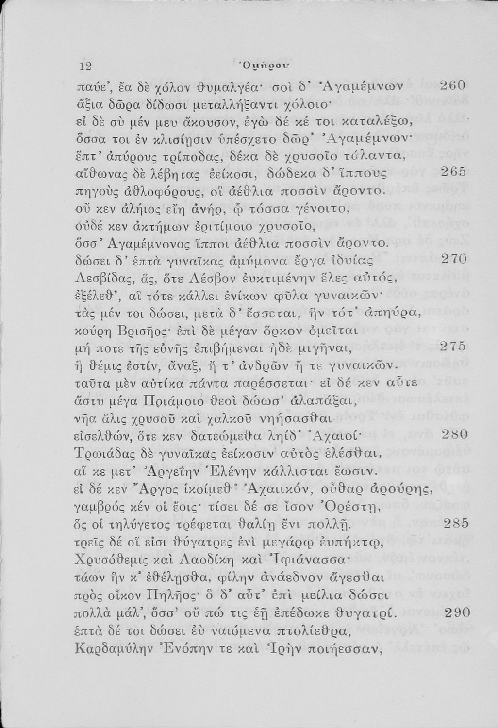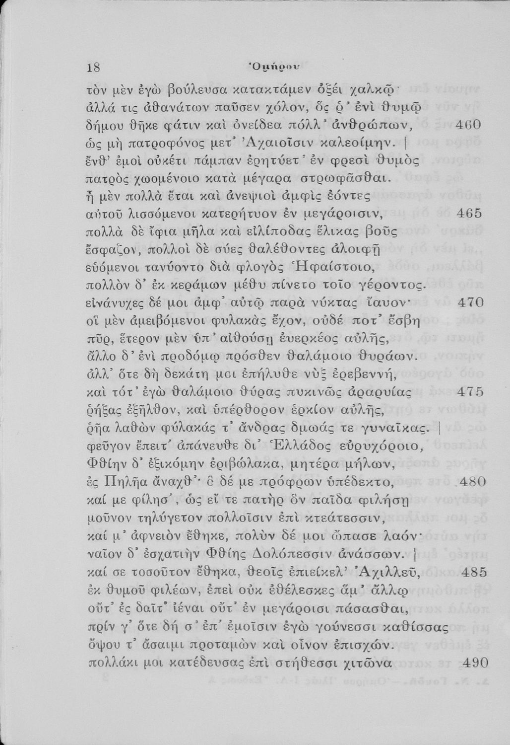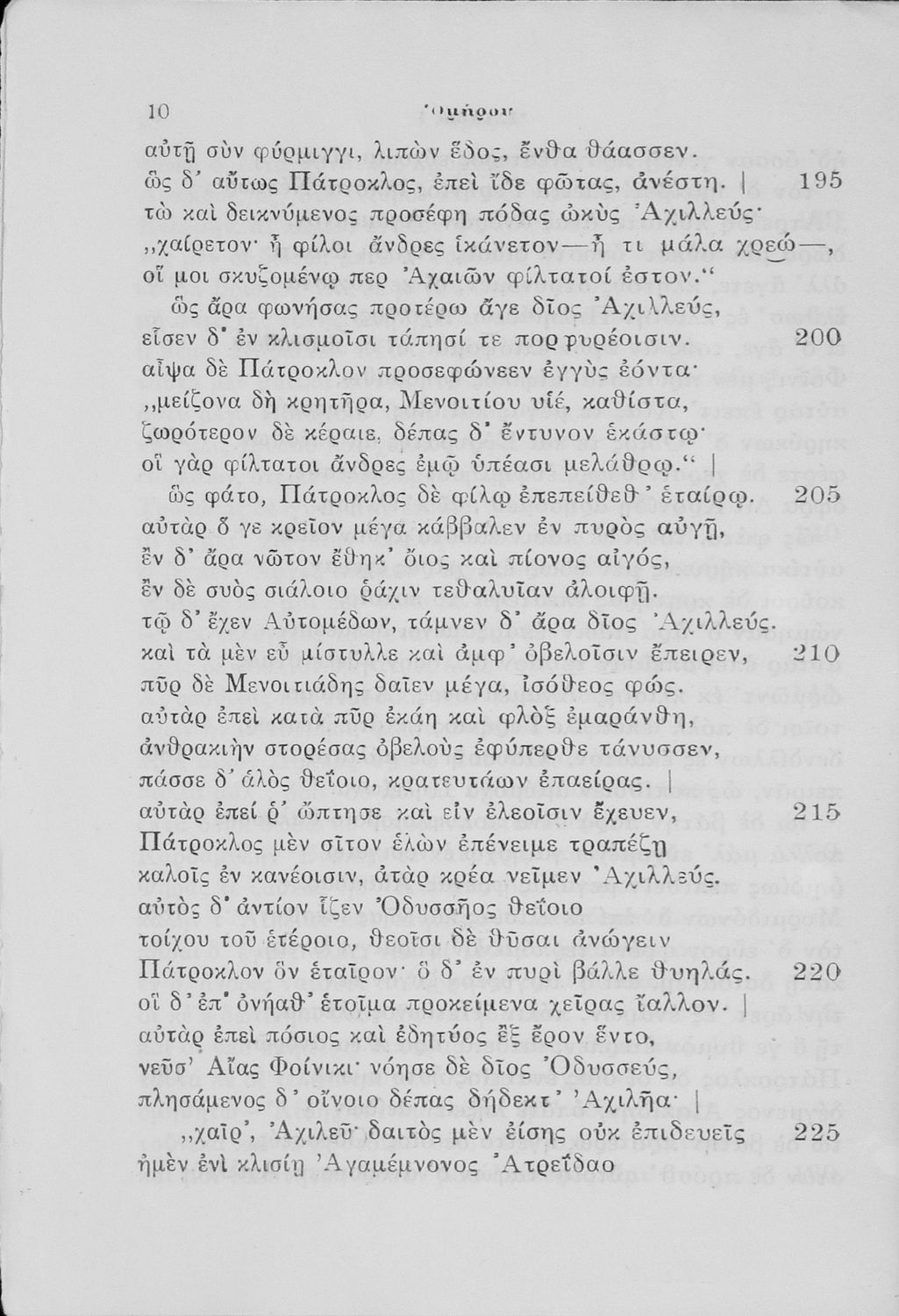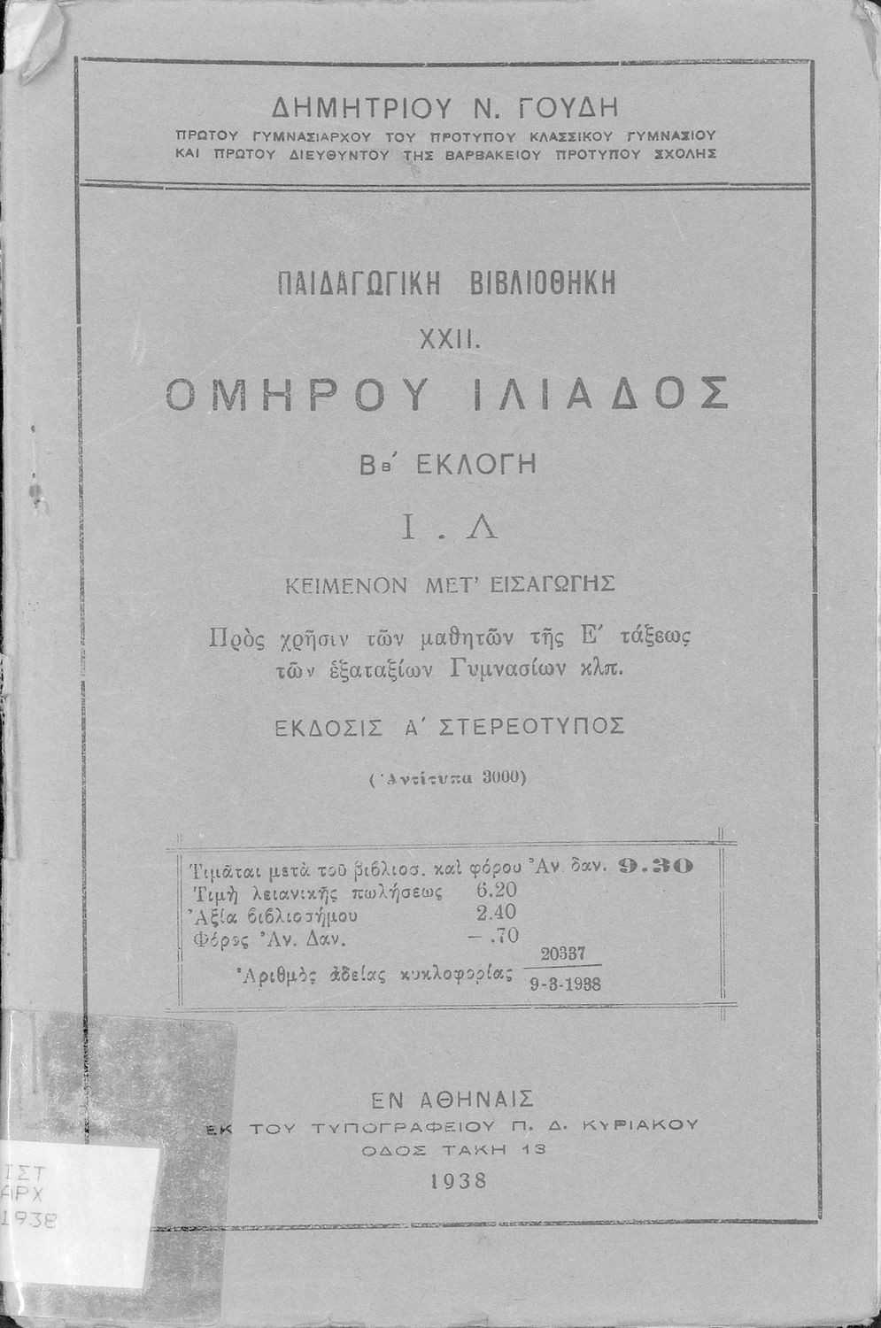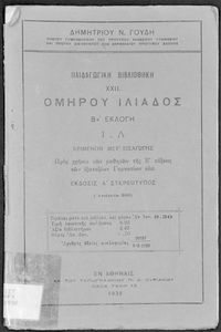 Μαθητικό βοήθημα της Ε΄ Γυμνασίου για το μάθημα των Αρχαίων Ελληνικών που περιέχει τις ραψωδίες Ι-Λ της Ιλιάδας και εισαγωγή. Ο συγγραφέας ήταν Διευθυντής στη Βαρβάκειο πρότυπο Σχολή και Γυμνασιάρχης του πρότυπου Κλασσικού Γυμνασίου.