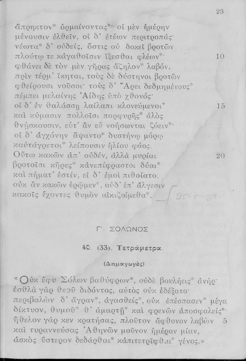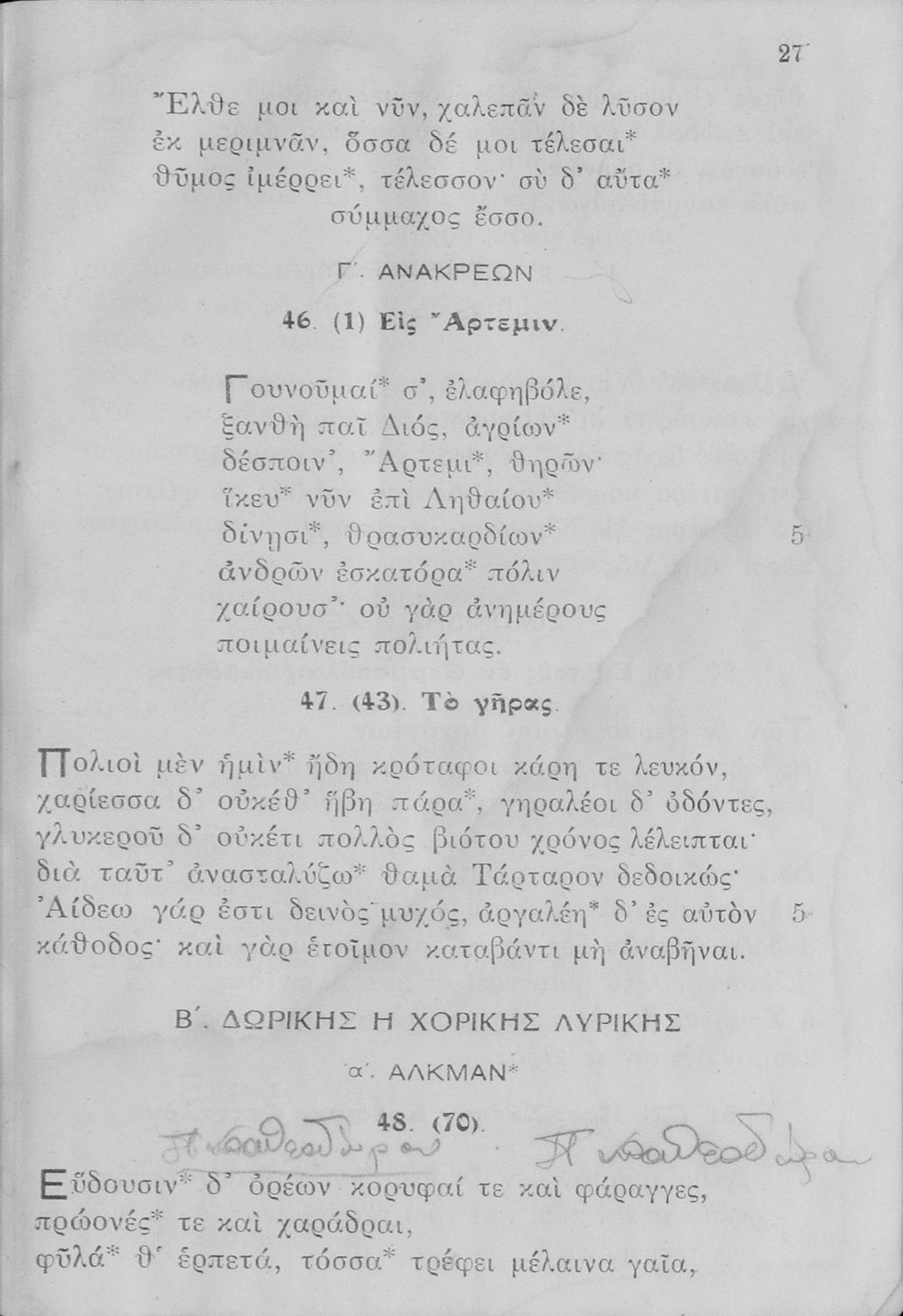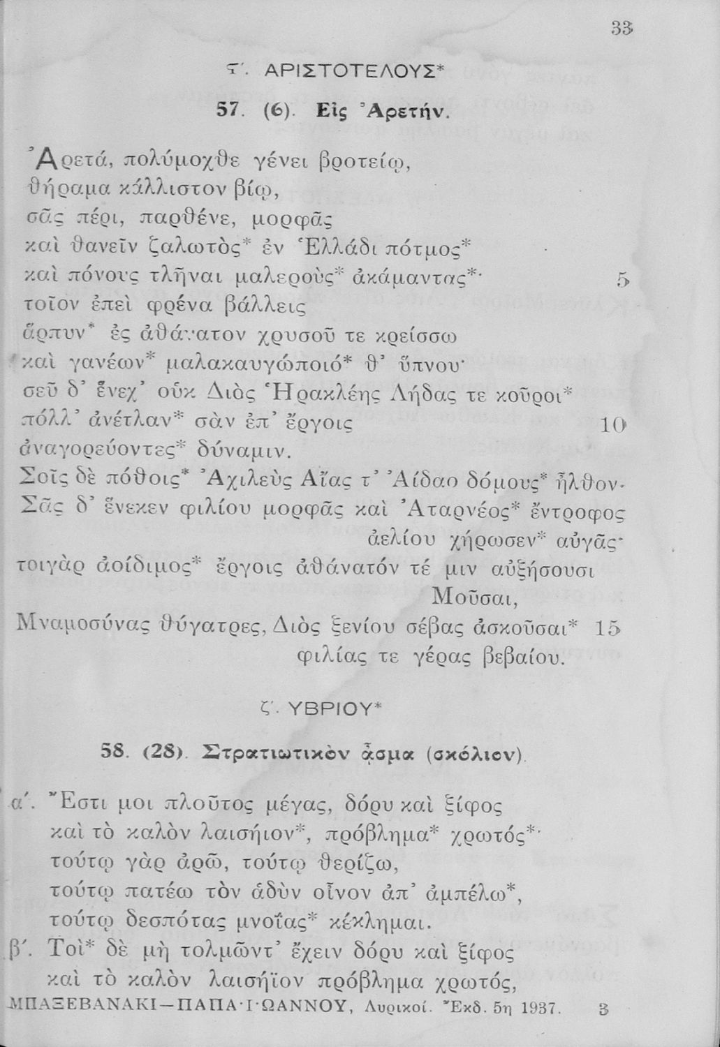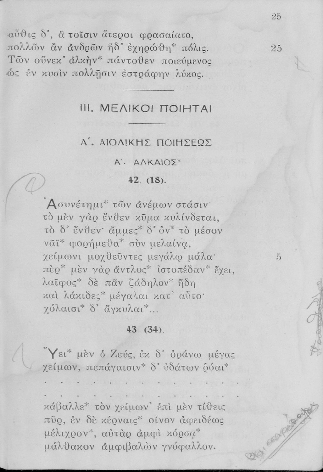 Έλληνες Λυρικοί και Χριστιανικής λυρικής Ποιήσεως εκλεκτά μέρη. Προς χρήσιν των μαθητών της Ε΄ Τάξεως των Γυμνασίων