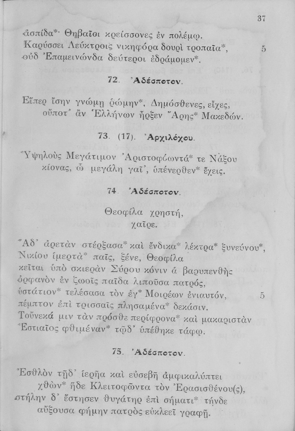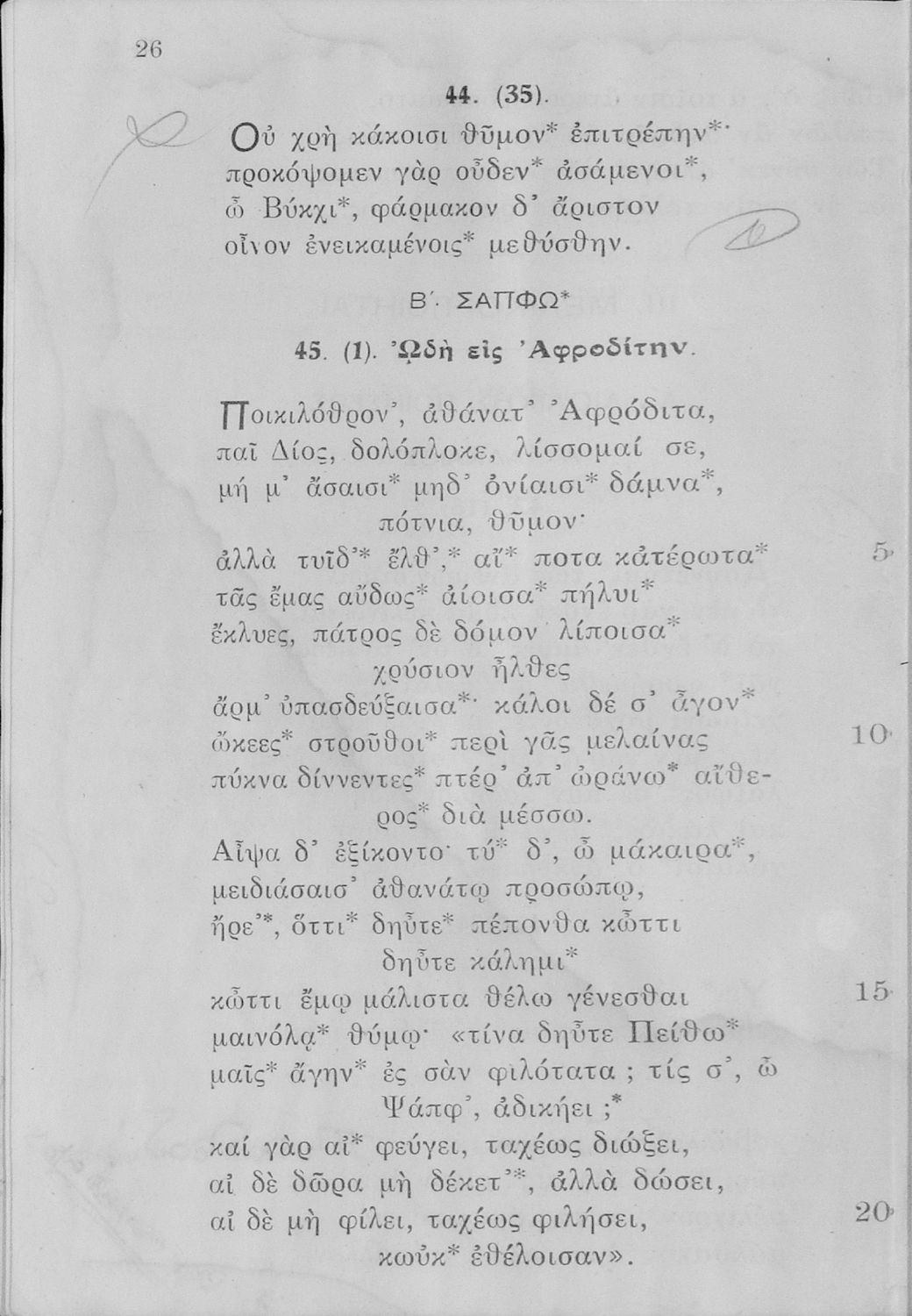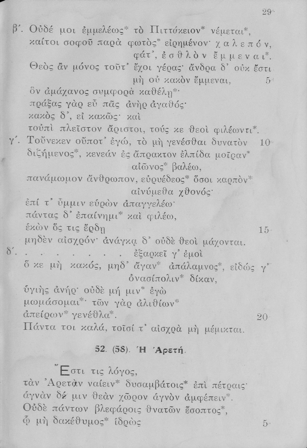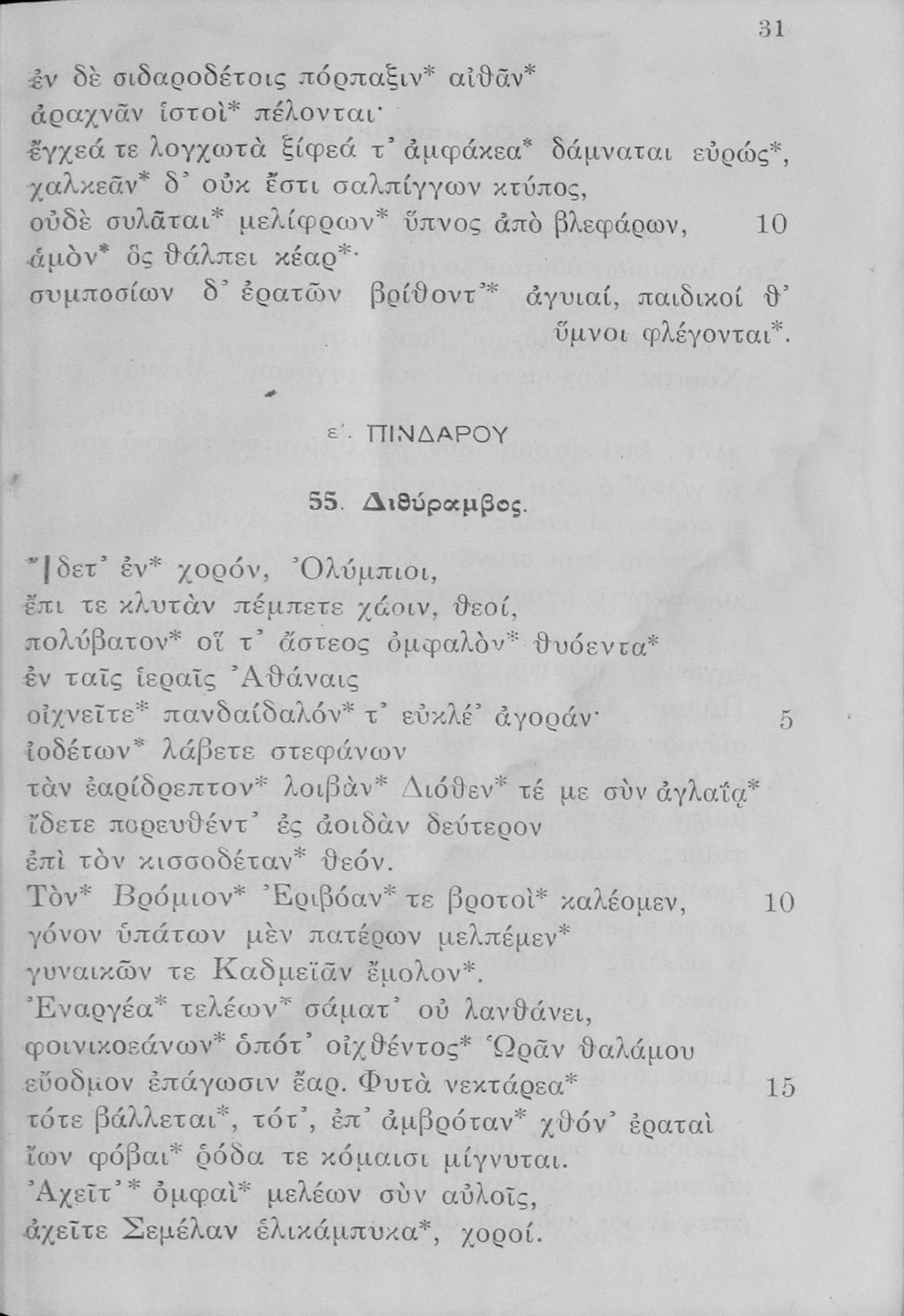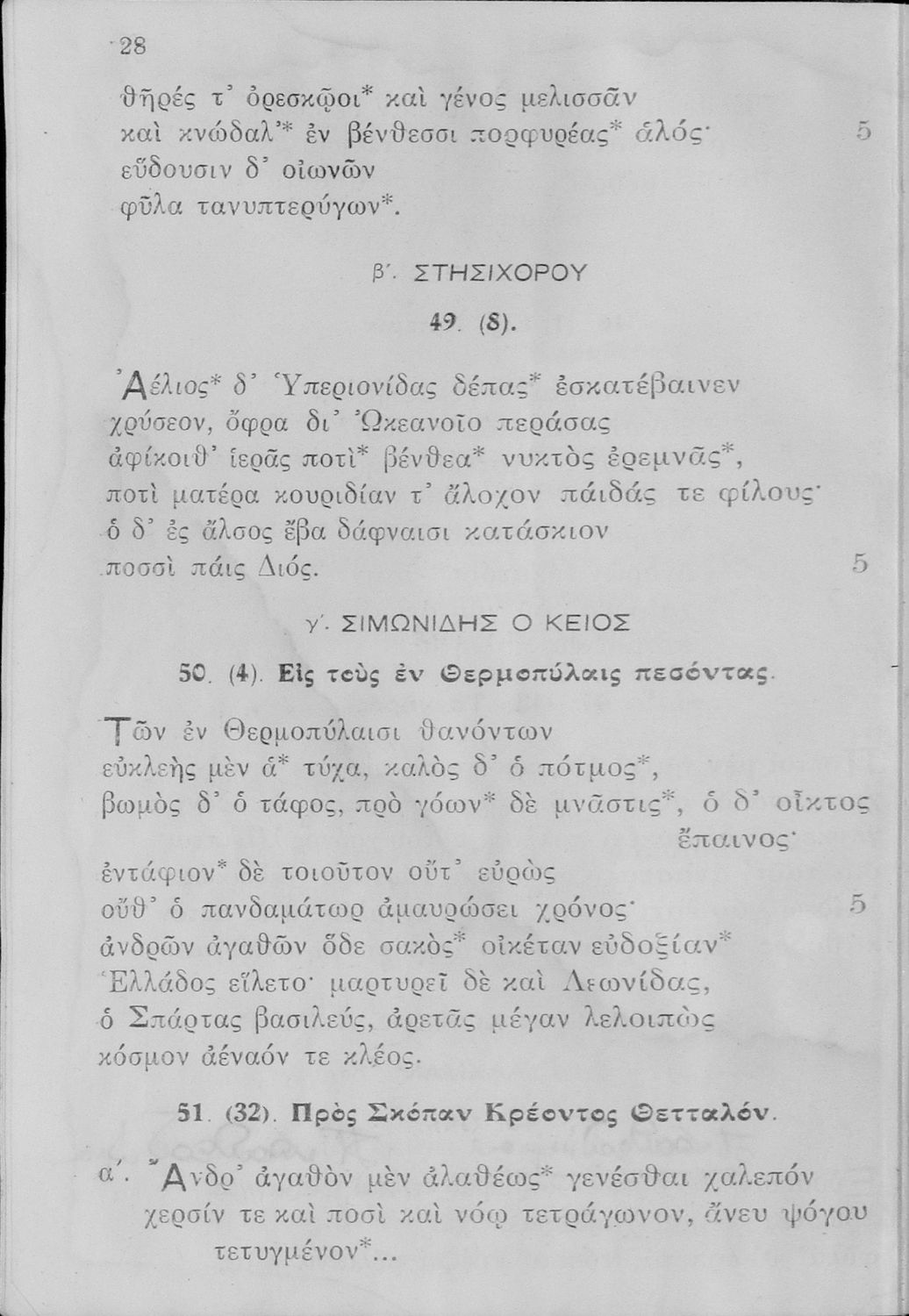 Σχολικό εγχειρίδιο Αρχαίων Ελληνικών Ε΄ Γυμνασίου που περιλαμβάνει αποσπάσματα από έργα αρχαίων Ελλήνων και χριστιανών ποιητών, και λεξιλόγιο