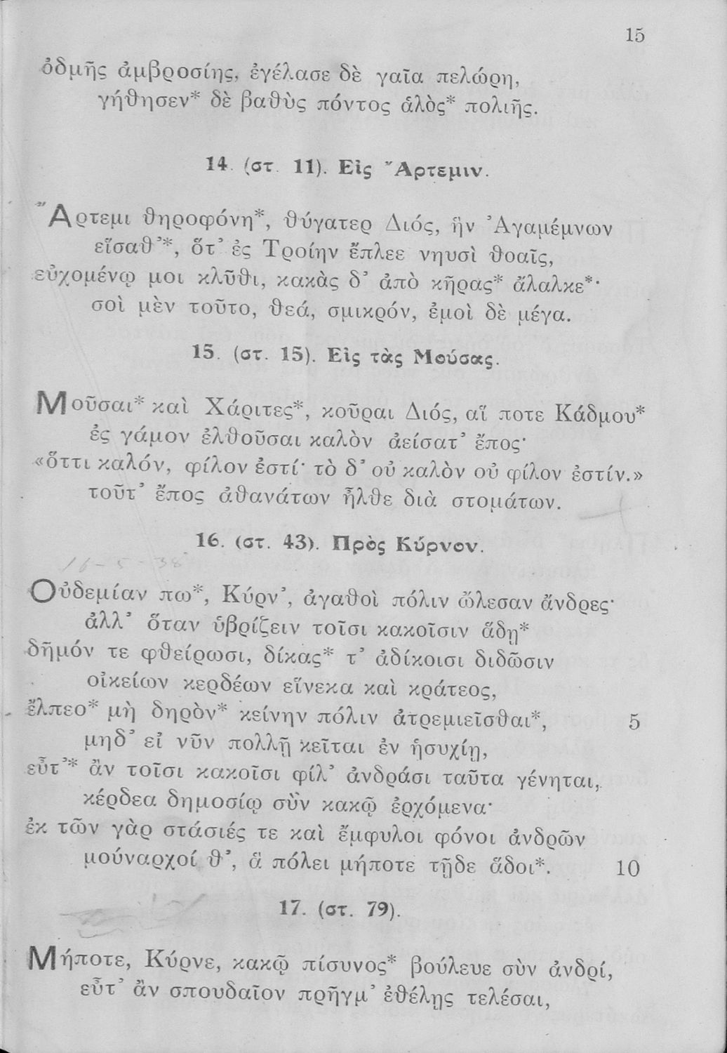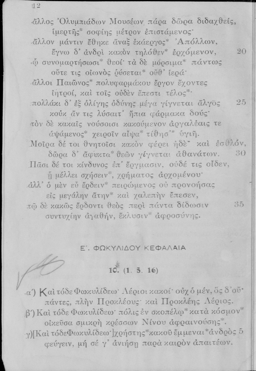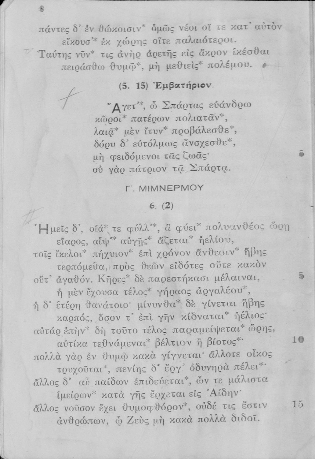 Σχολικό εγχειρίδιο Αρχαίων Ελληνικών Ε΄ Γυμνασίου που περιλαμβάνει αποσπάσματα από έργα αρχαίων Ελλήνων και χριστιανών ποιητών, και λεξιλόγιο