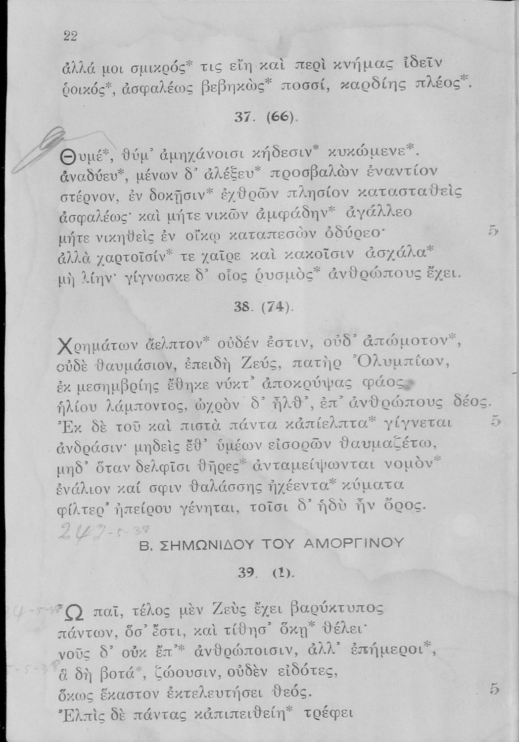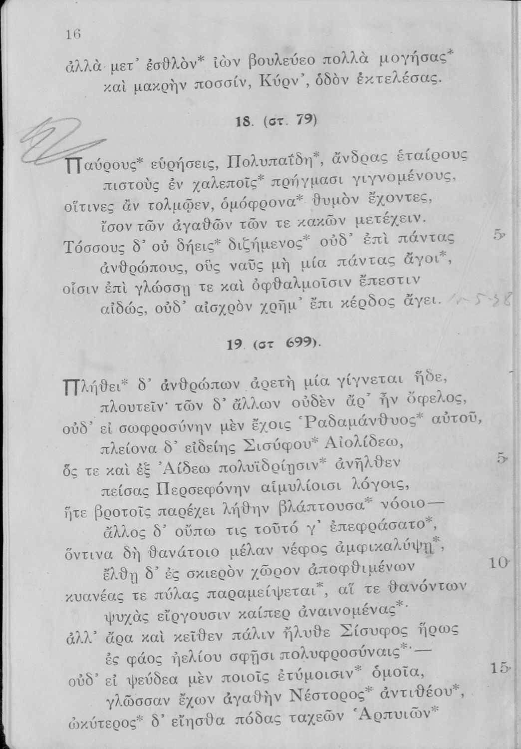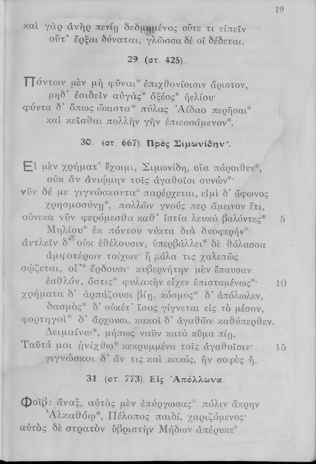 Σχολικό εγχειρίδιο Αρχαίων Ελληνικών Ε΄ Γυμνασίου που περιλαμβάνει αποσπάσματα από έργα αρχαίων Ελλήνων και χριστιανών ποιητών, και λεξιλόγιο