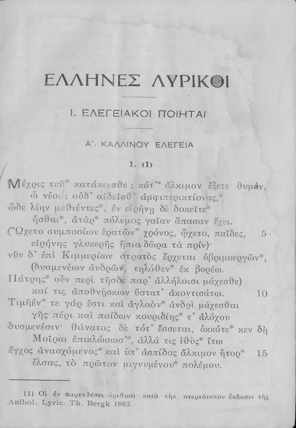 Έλληνες Λυρικοί και Χριστιανικής λυρικής Ποιήσεως εκλεκτά μέρη. Προς χρήσιν των μαθητών της Ε΄ Τάξεως των Γυμνασίων