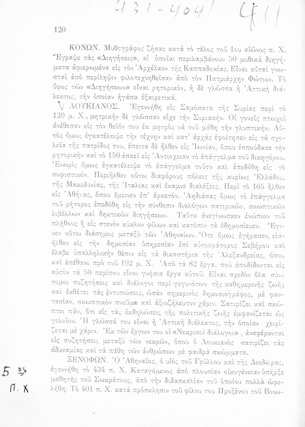 Σχολικό εγχειρίδιο Αρχαίων Ελληνικών Γ΄ Γυμνασίου που περιλαμβάνει αποσπάσματα έργων αρχαίων Ελλήνων συγγραφέων, ερμηνευτικά σχόλια και βιογραφικά σημειώματα.