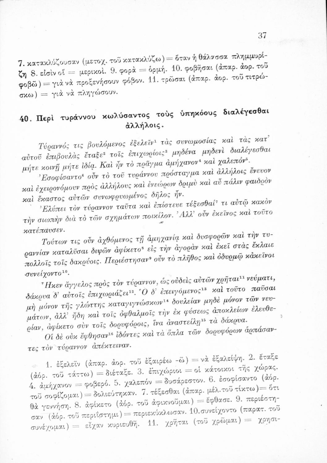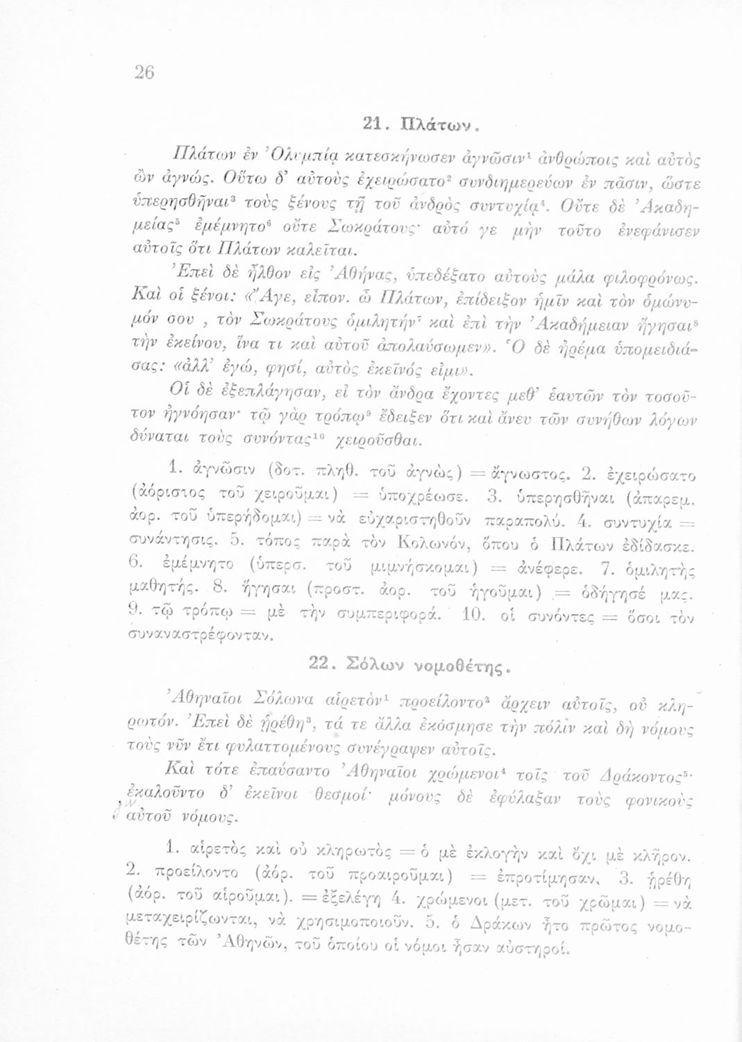 Σχολικό εγχειρίδιο Αρχαίων Ελληνικών Β΄ και Γ΄ Γυμνασίου που περιέχει αποσπάσματα από έργα αρχαίων Ελλήνων συγγραφέων, ερμηνευτικά και πραγματολογικά σχόλια και γραμματικές παρατηρήσεις.
