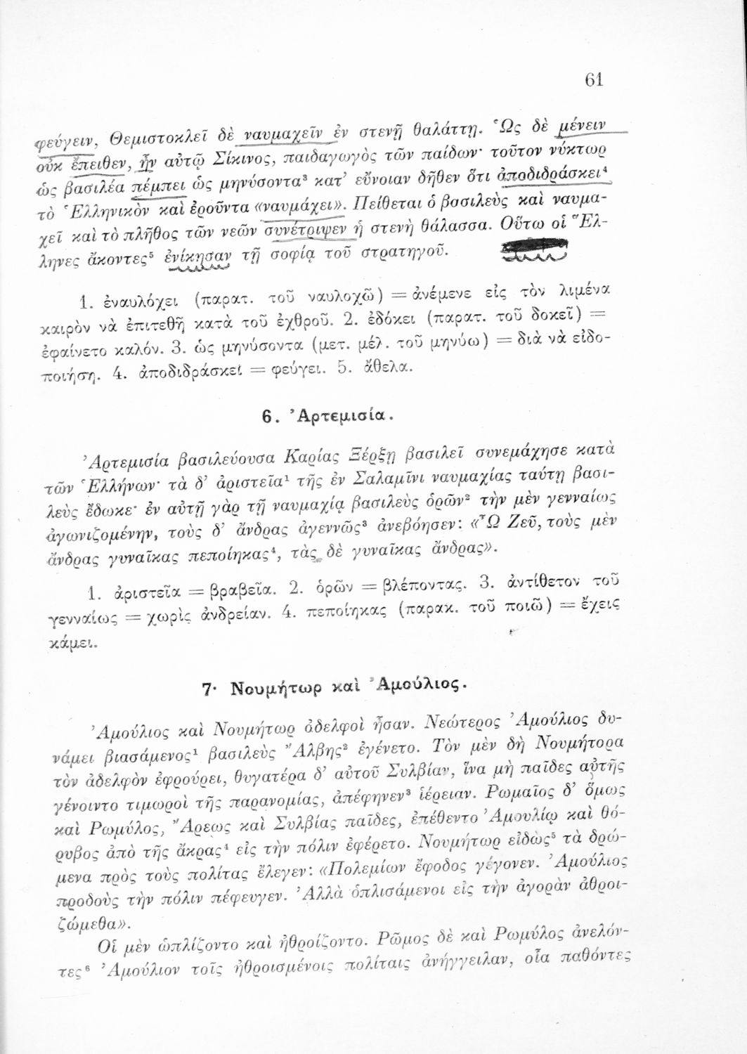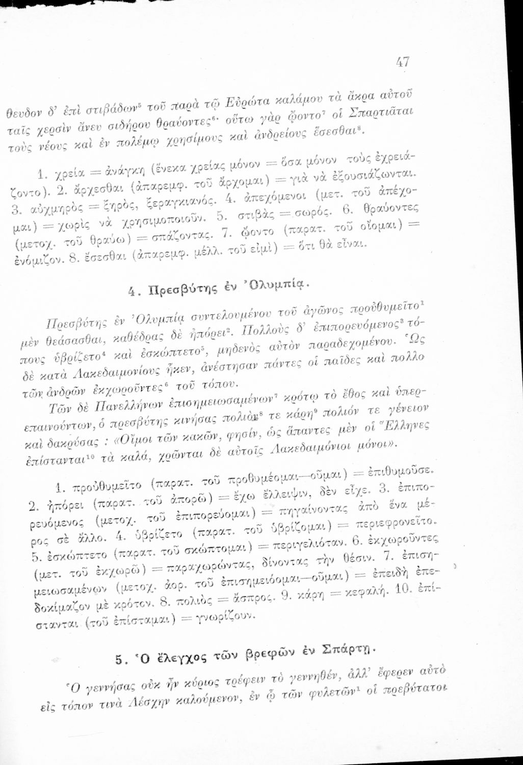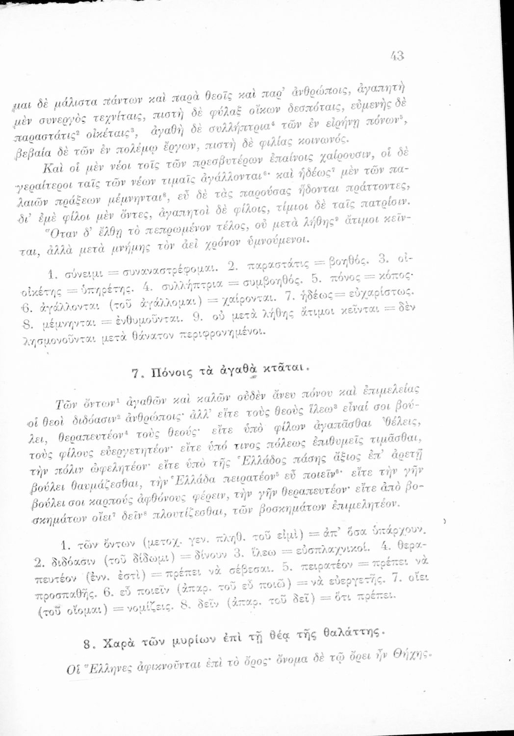 Σχολικό εγχειρίδιο Αρχαίων Ελληνικών Β΄ και Γ΄ Γυμνασίου που περιέχει αποσπάσματα από έργα αρχαίων Ελλήνων συγγραφέων, ερμηνευτικά και πραγματολογικά σχόλια και γραμματικές παρατηρήσεις.
