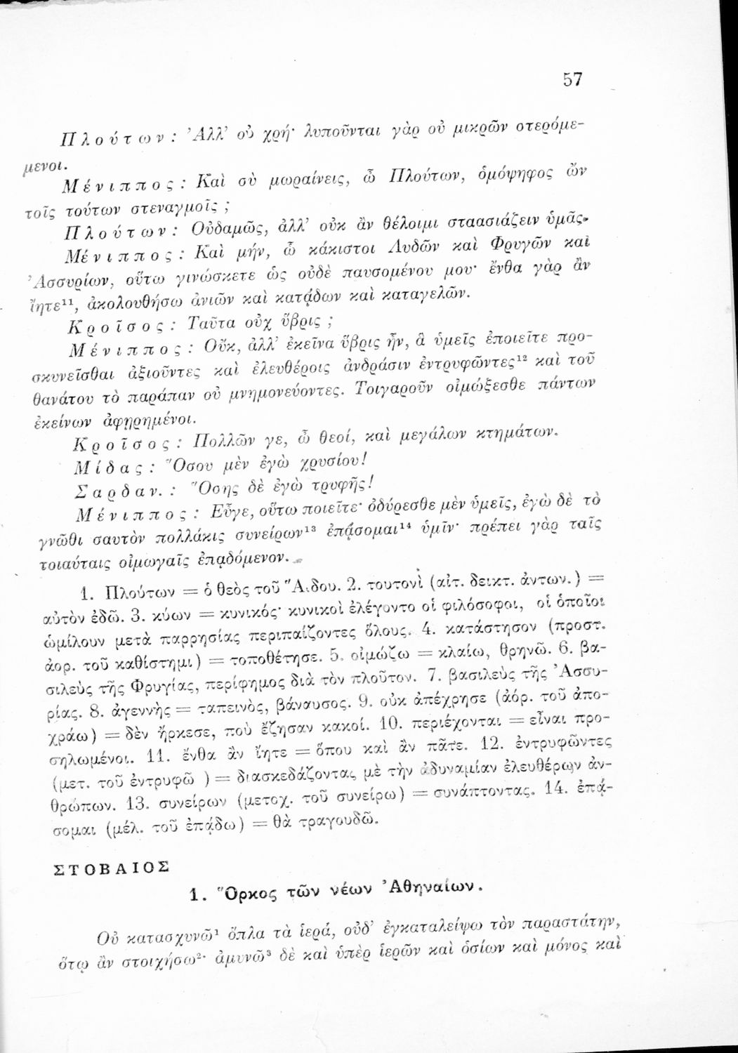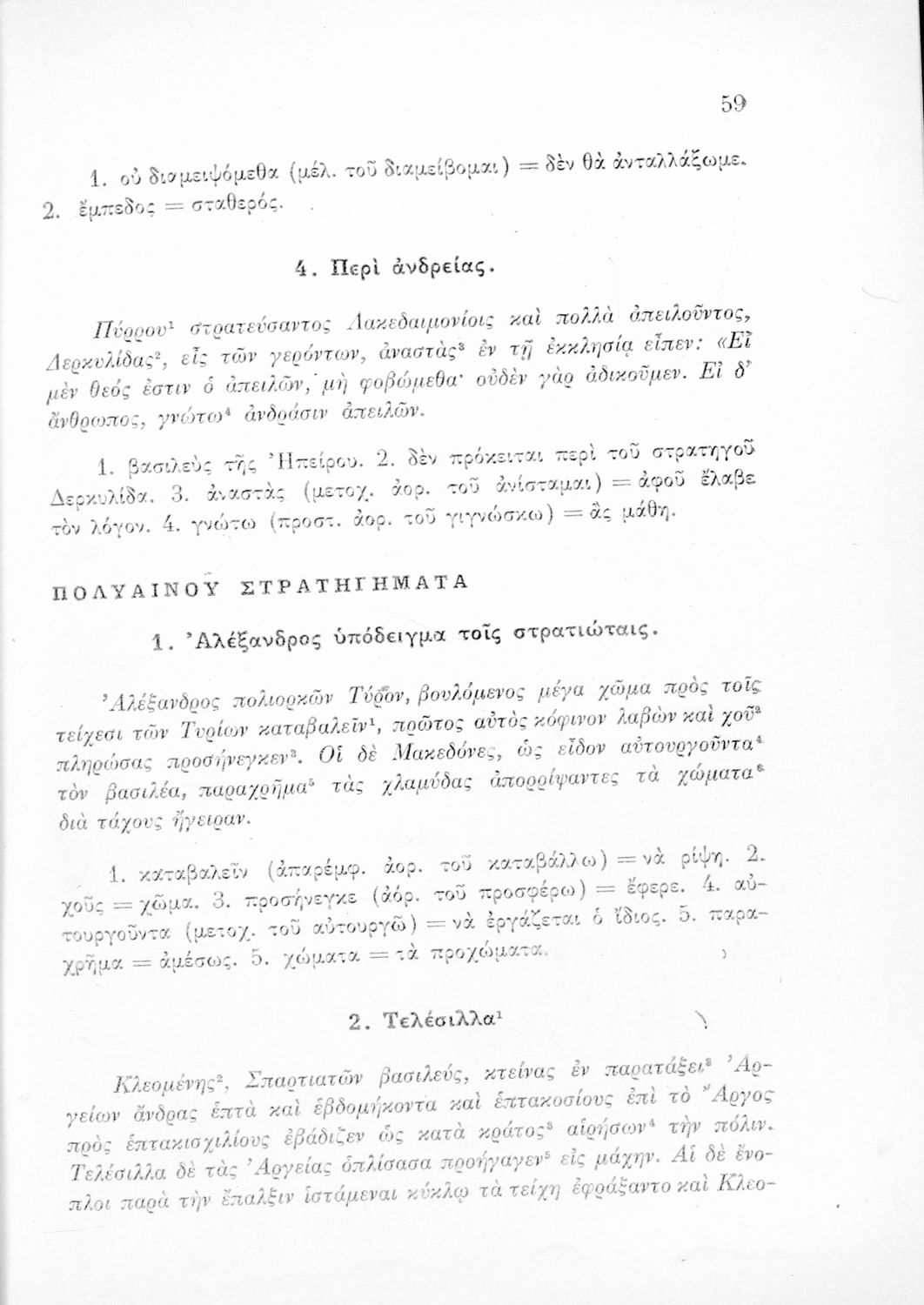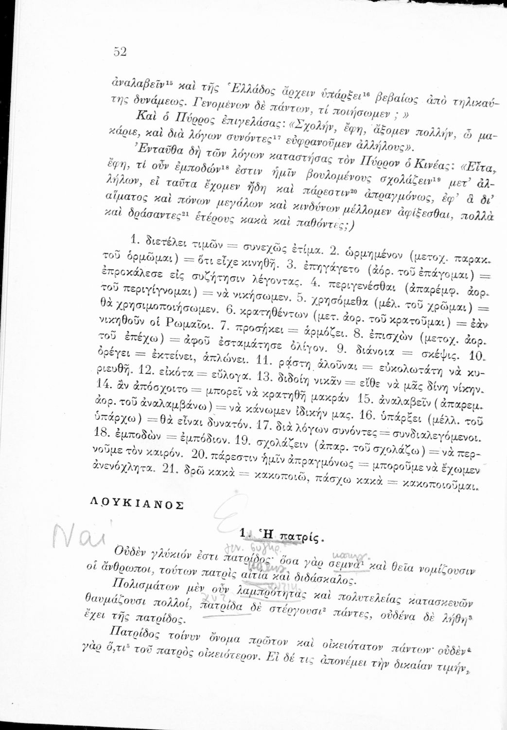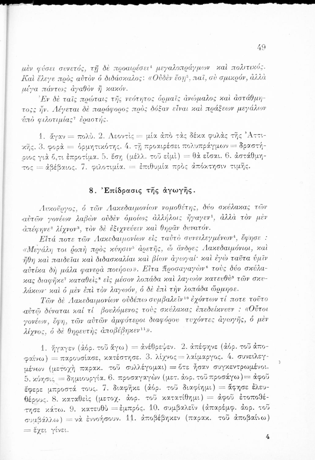 Σχολικό εγχειρίδιο Αρχαίων Ελληνικών Β΄ και Γ΄ Γυμνασίου που περιέχει αποσπάσματα από έργα αρχαίων Ελλήνων συγγραφέων, ερμηνευτικά και πραγματολογικά σχόλια και γραμματικές παρατηρήσεις.
