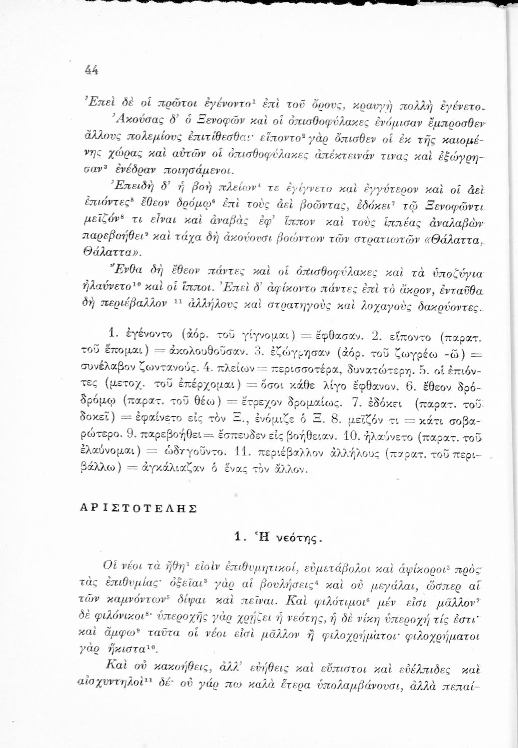 Σχολικό εγχειρίδιο Αρχαίων Ελληνικών Γ΄ Γυμνασίου που περιλαμβάνει αποσπάσματα από το έργο του Ξενοφώντα Κύρου Ανάβασις, εισαγωγικά σχόλια για τη ζωή και το έργο του, ερμηνευτικές και γραμματικές παρατηρήσεις.