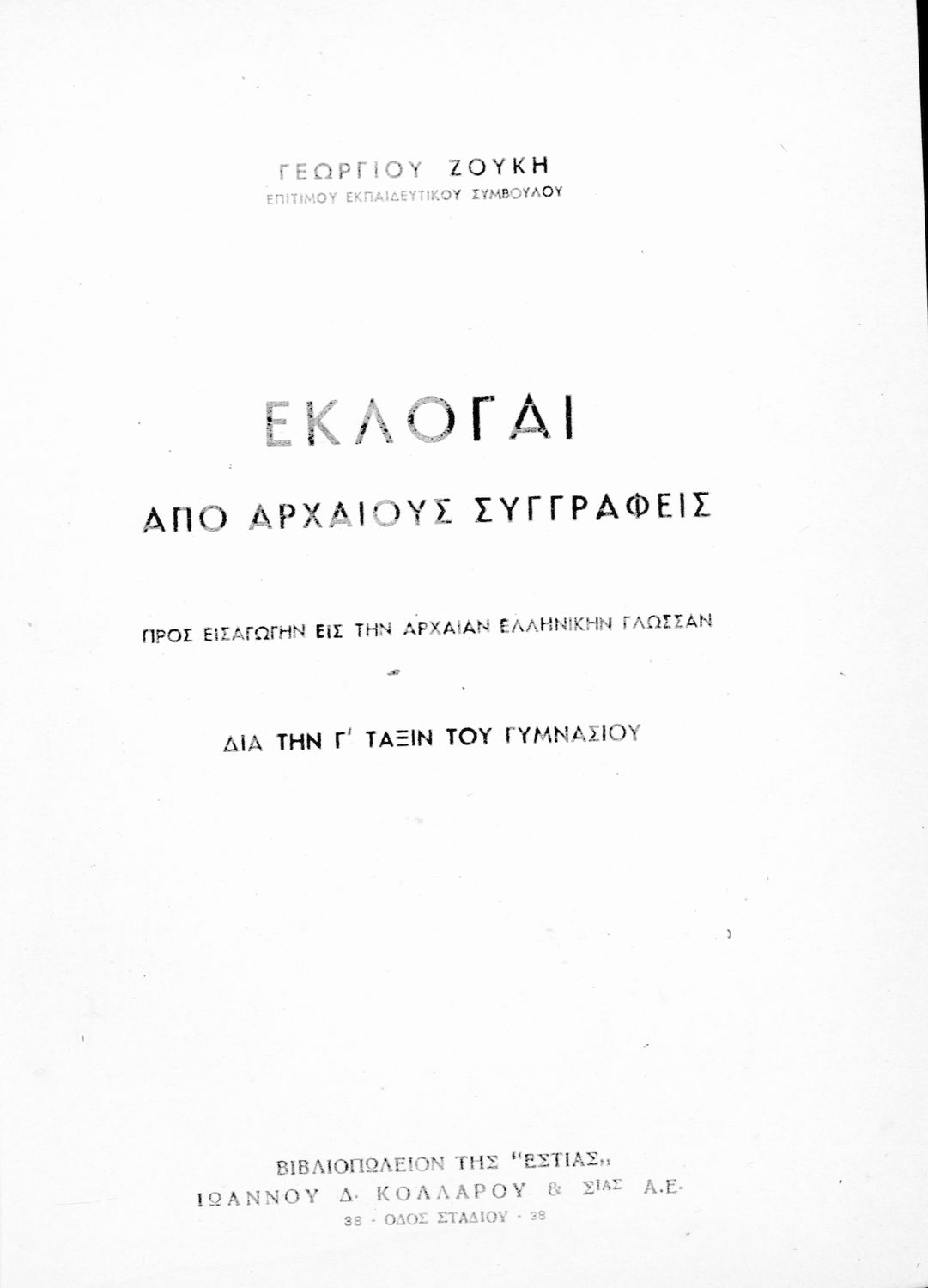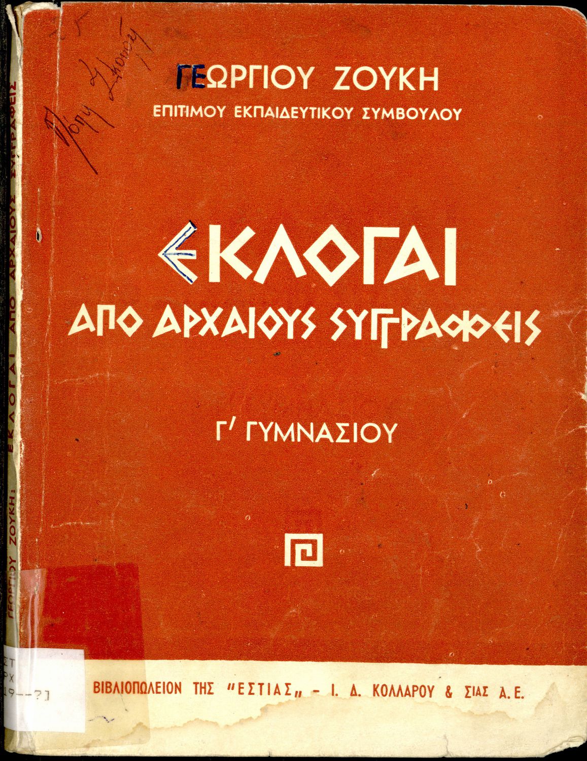 Τίτλος: Εκλογαί από αρχαίους συγγραφείς προς εισαγωγήν εις την αρχαίαν ελληνικήν γλώσσαν δια την Γ΄ τάξιν του Γυμνασίου