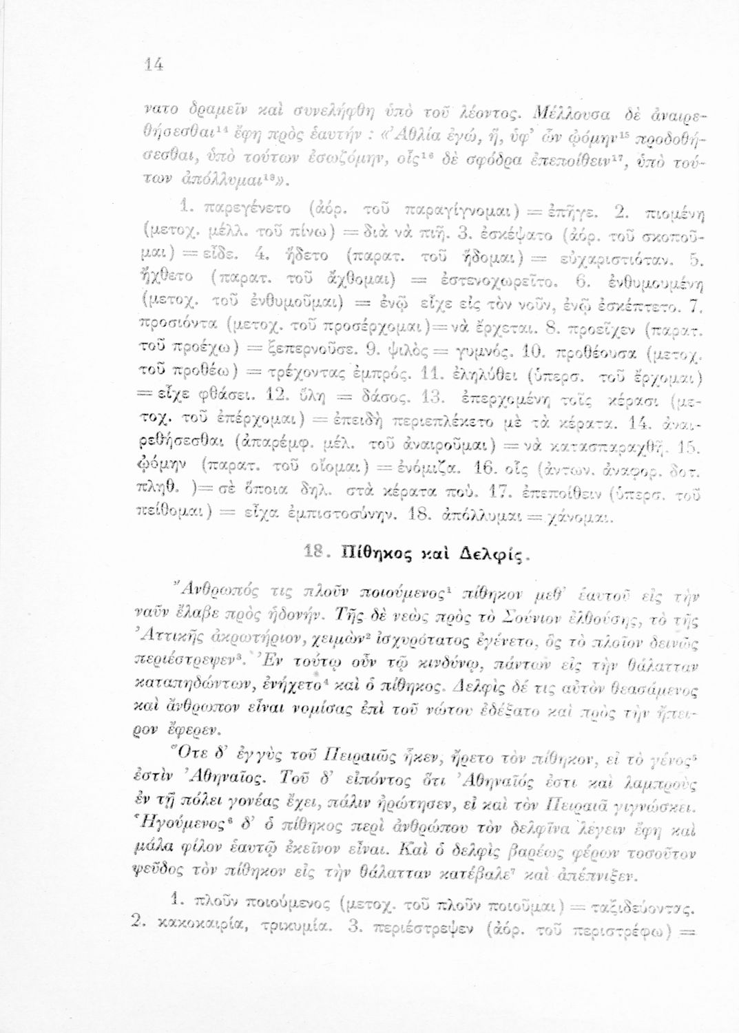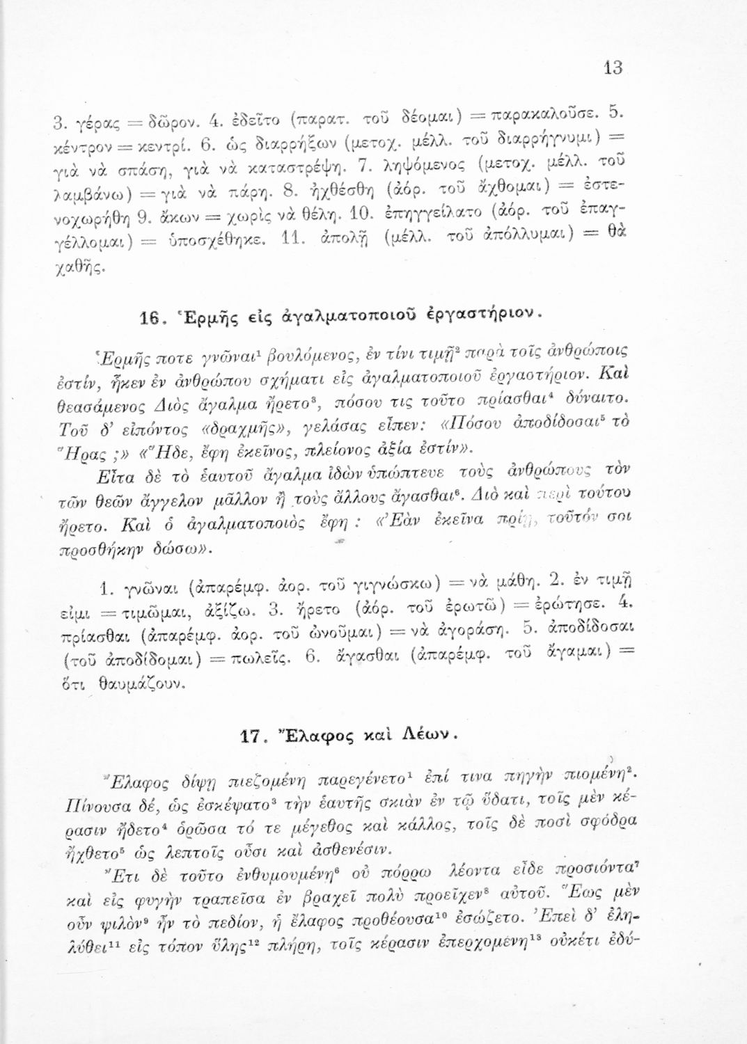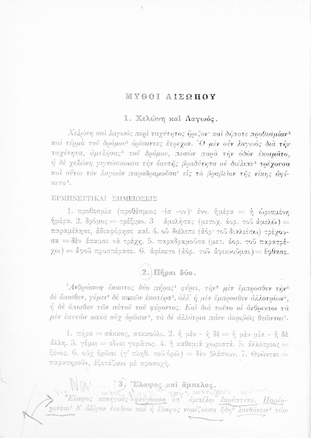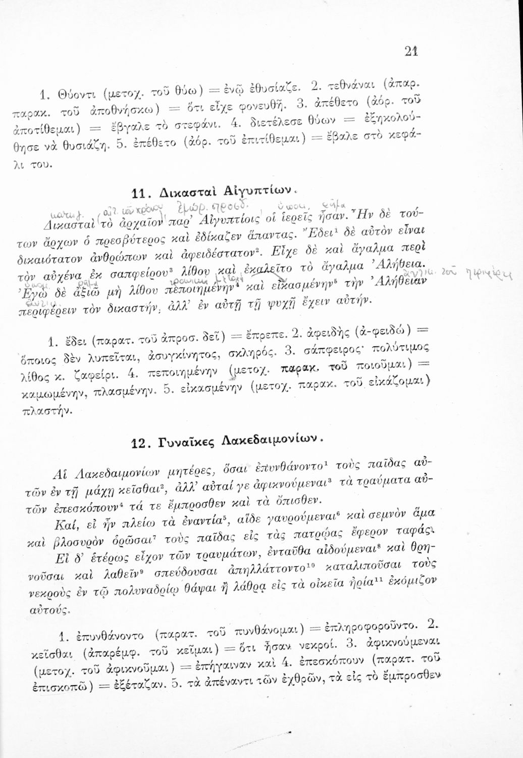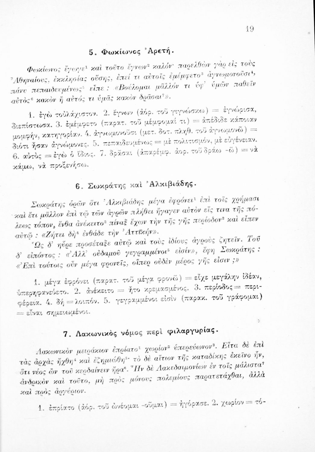 Σχολικό εγχειρίδιο Αρχαίων Ελληνικών Β΄ και Γ΄ Γυμνασίου που περιέχει αποσπάσματα από έργα αρχαίων Ελλήνων συγγραφέων, ερμηνευτικά και πραγματολογικά σχόλια και γραμματικές παρατηρήσεις.