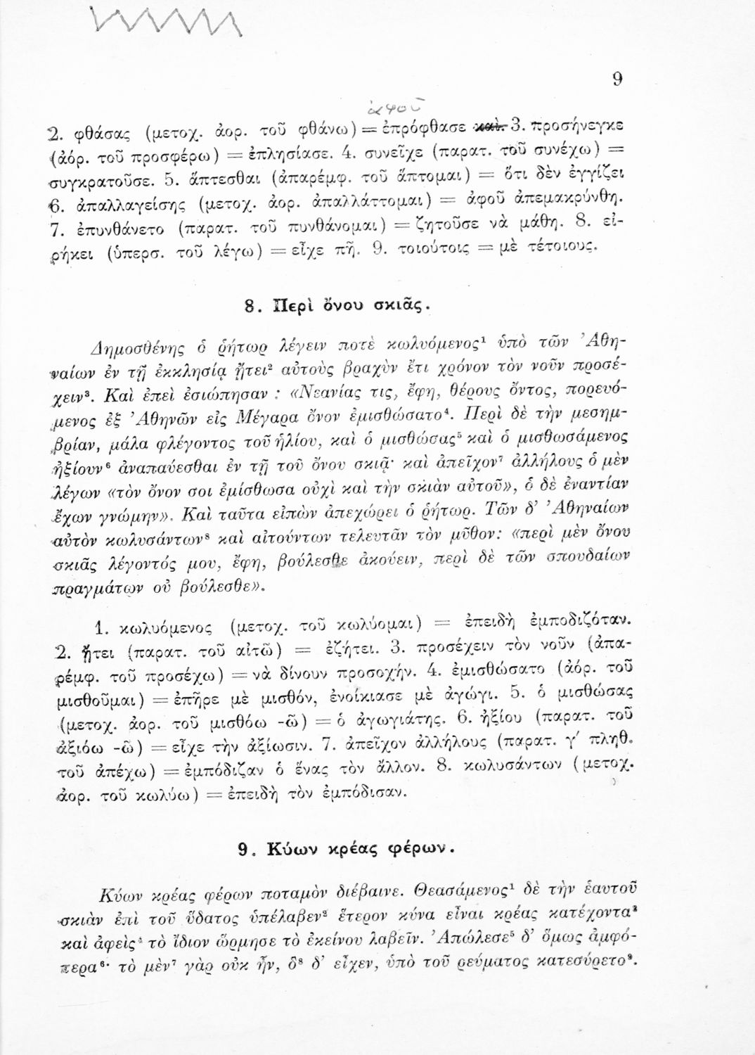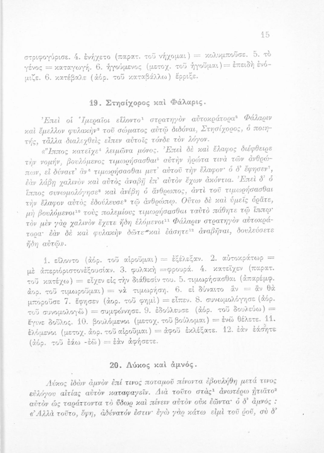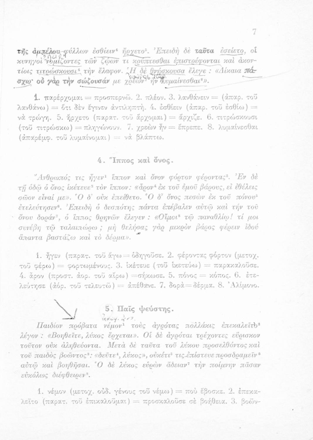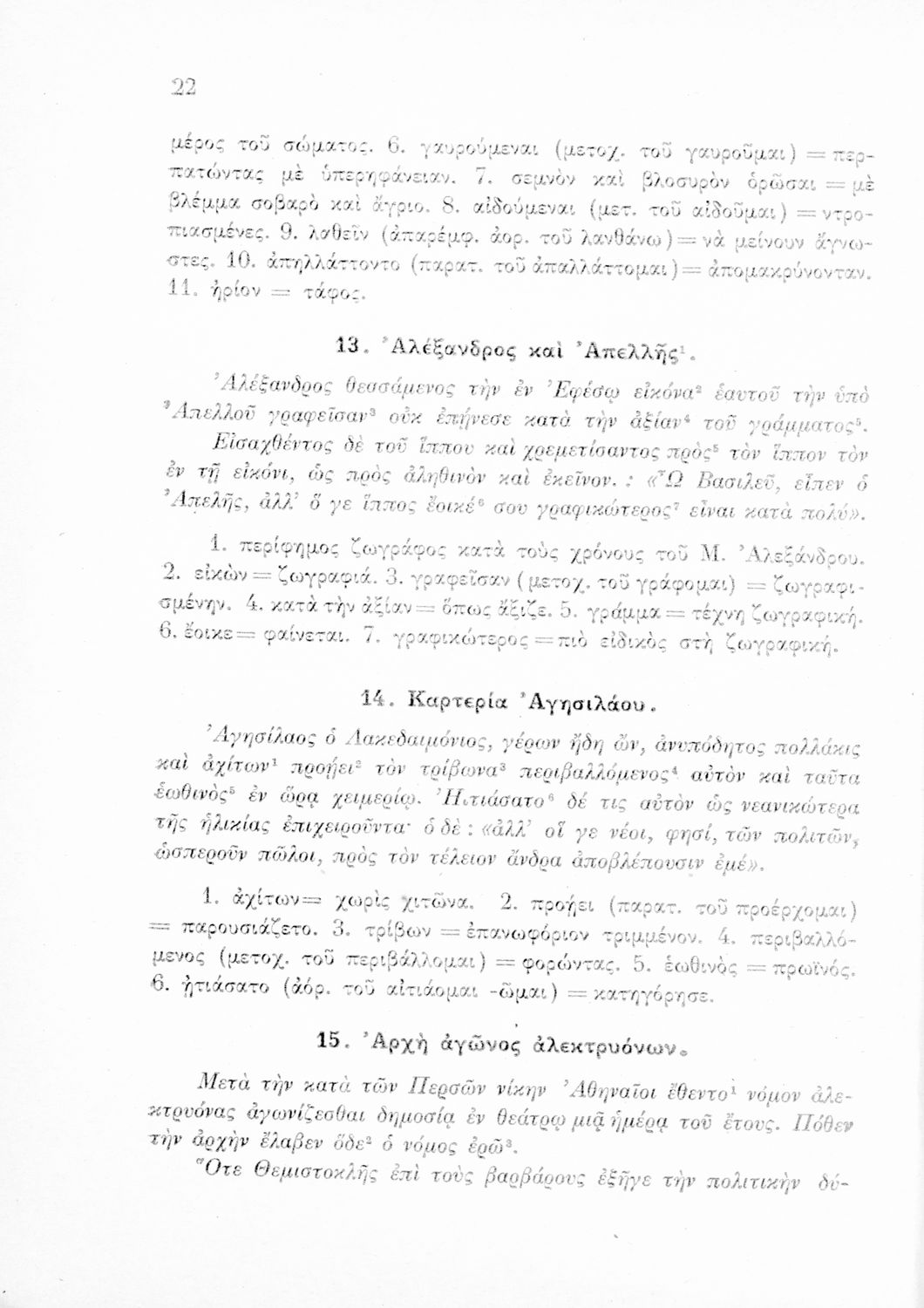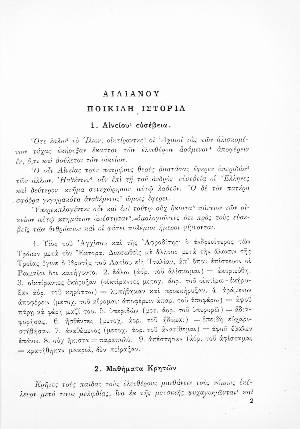 Σχολικό εγχειρίδιο Αρχαίων Ελληνικών Β΄ και Γ΄ Γυμνασίου που περιέχει αποσπάσματα από έργα αρχαίων Ελλήνων συγγραφέων, ερμηνευτικά και πραγματολογικά σχόλια και γραμματικές παρατηρήσεις.