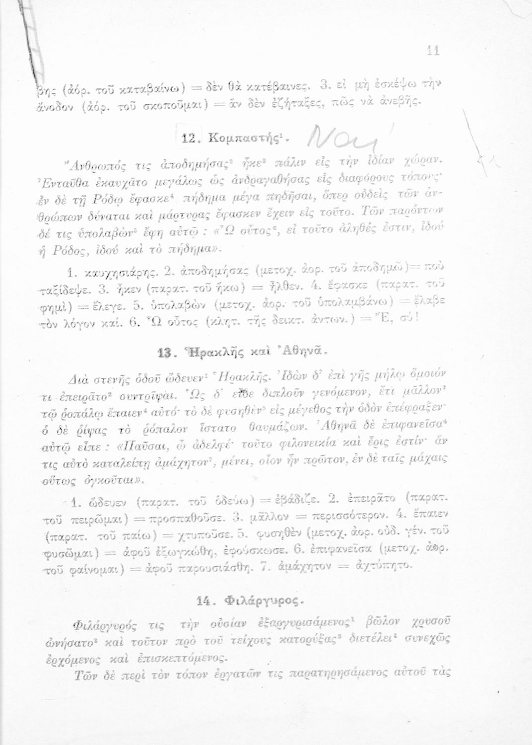 Μαθητικό βοήθημα Αρχαίων Ελληνικών για τη Β΄, Γ΄, Δ΄ Γυμνασίου που περιέχει θέματα από την νέα ελληνική στην αρχαία για την εκμάθηση της γλώσσας, τους κανόνες της γραμματικής και του συντακτικού.