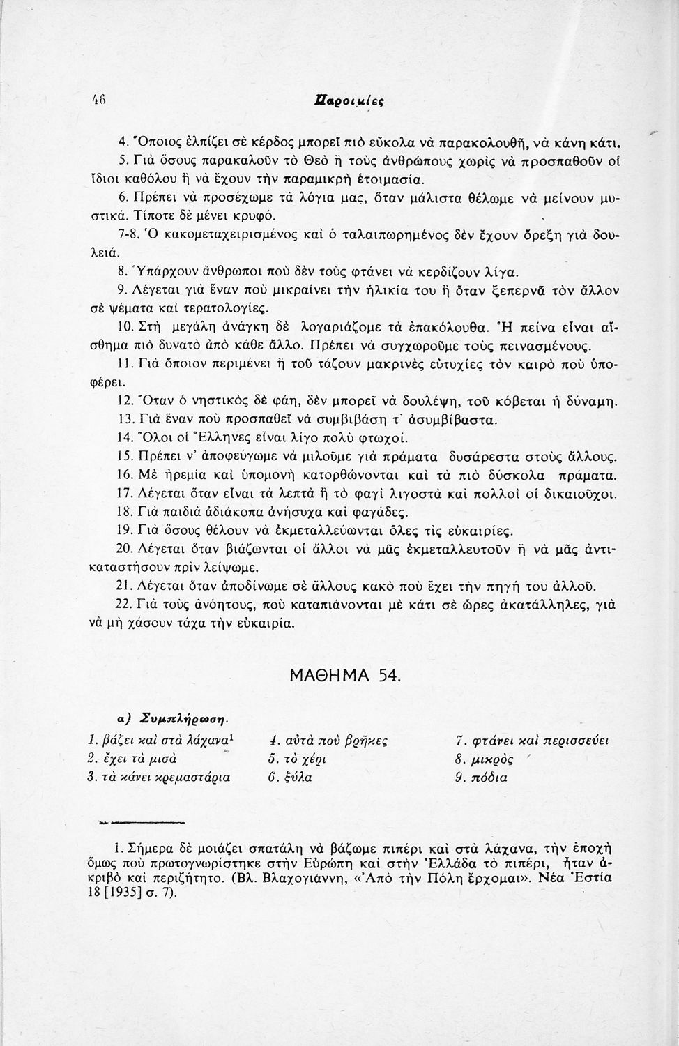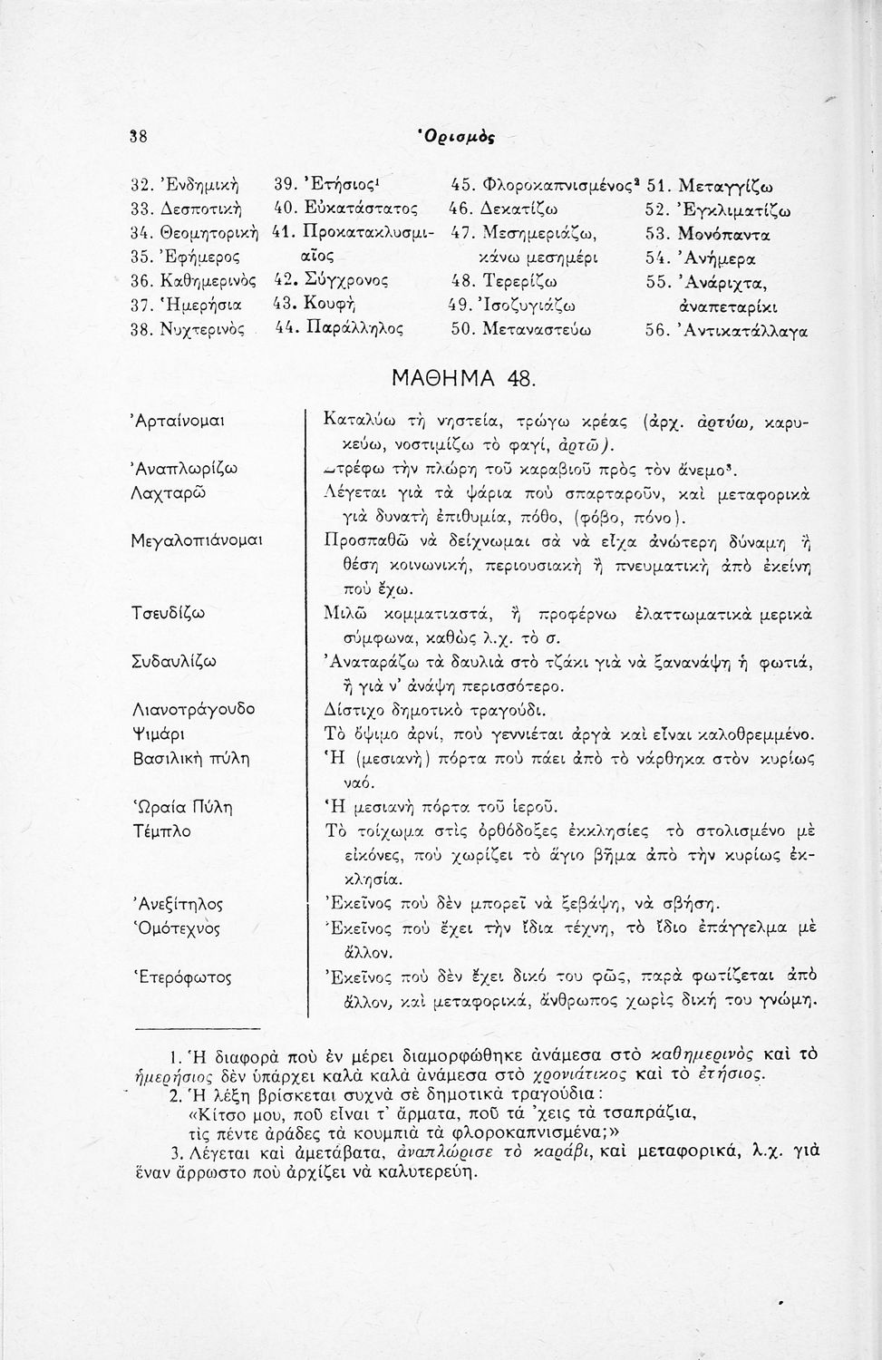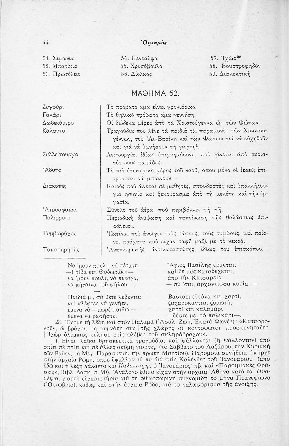 Το σύγγραμμα ήταν εκπαιδευτικό βοήθημα για το μάθημα των νέων ελληνικών. Αρχικά, έχει οδηγίες, οι οποίες απευθύνονται στους δασκάλους και τους μαθητές αντίστοιχα για την εξυπηρέτηση της διδασκαλίας. Στη ...