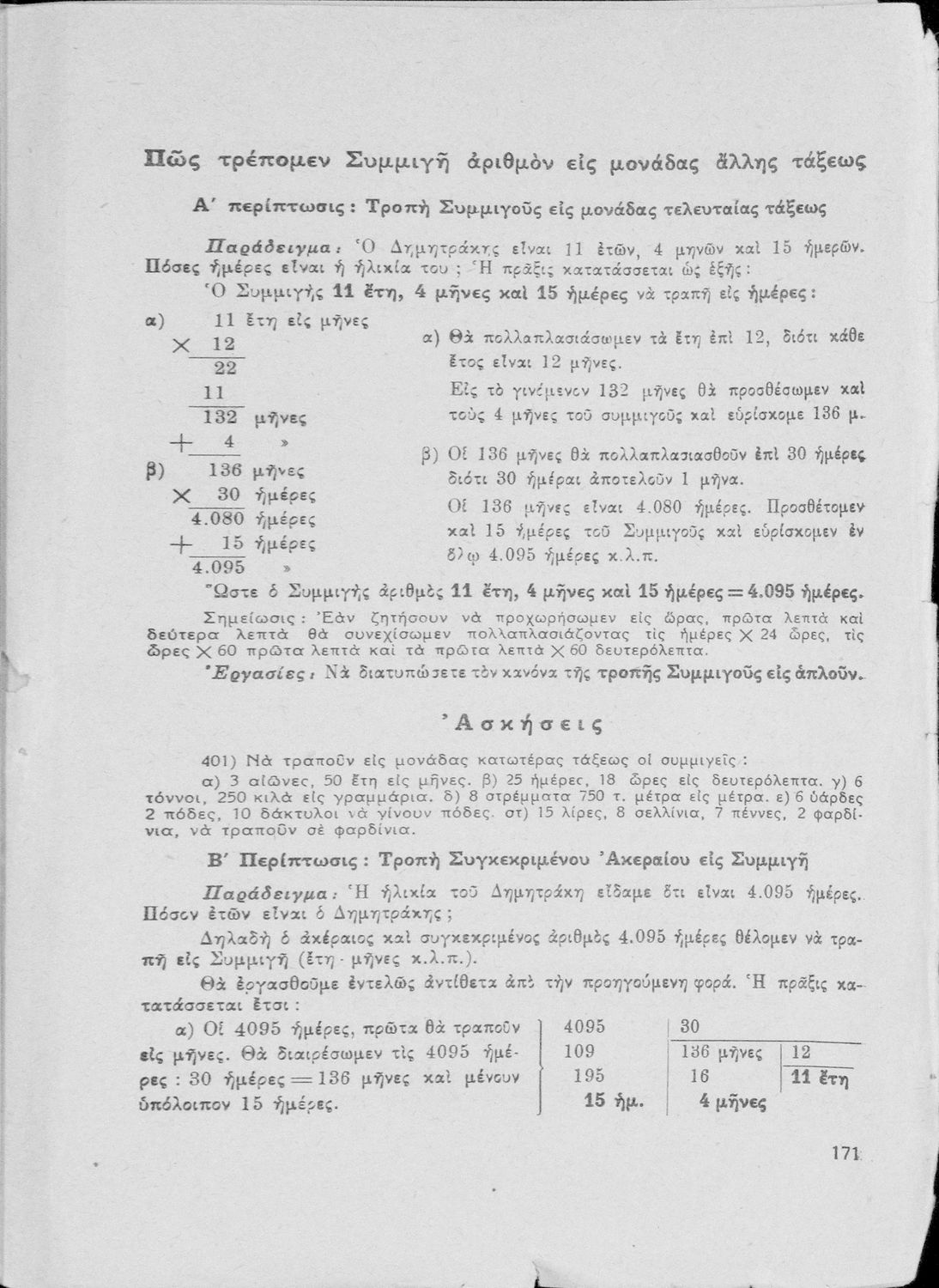 Σχολικό εγχειρίδιο Αριθμητικής για τα Γυμνάσια και Αστικά Σχολεία που είναι χωρισμένο σε θεωρία και ασκήσεις με έντονο επιχειρηματικό προσανατολισμό. Περιλαμβάνει στοιχεία Θεωρητικής Αριθμητικής.