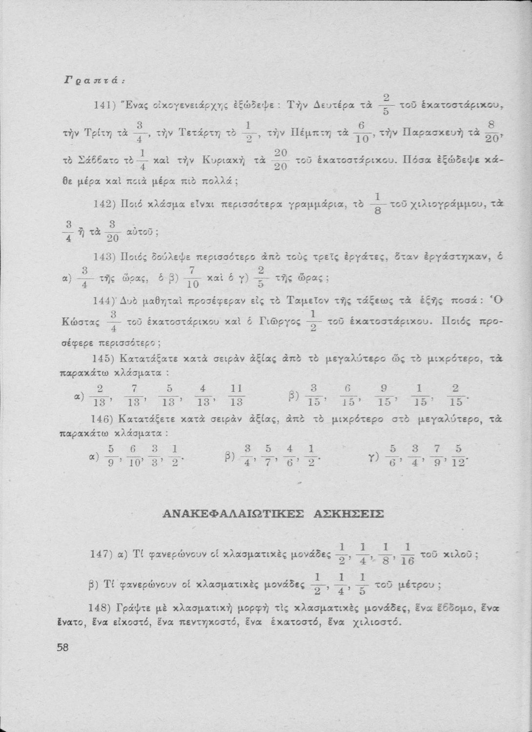 Μαθητικό βοήθημα Αριθμητικής για την Ε΄ Δημοτικού που περιέχει ασκήσεις με επιχειρηματικό προσανατολισμό και εστιάζει στις αριθμητικές πράξεις με κλάσματα.