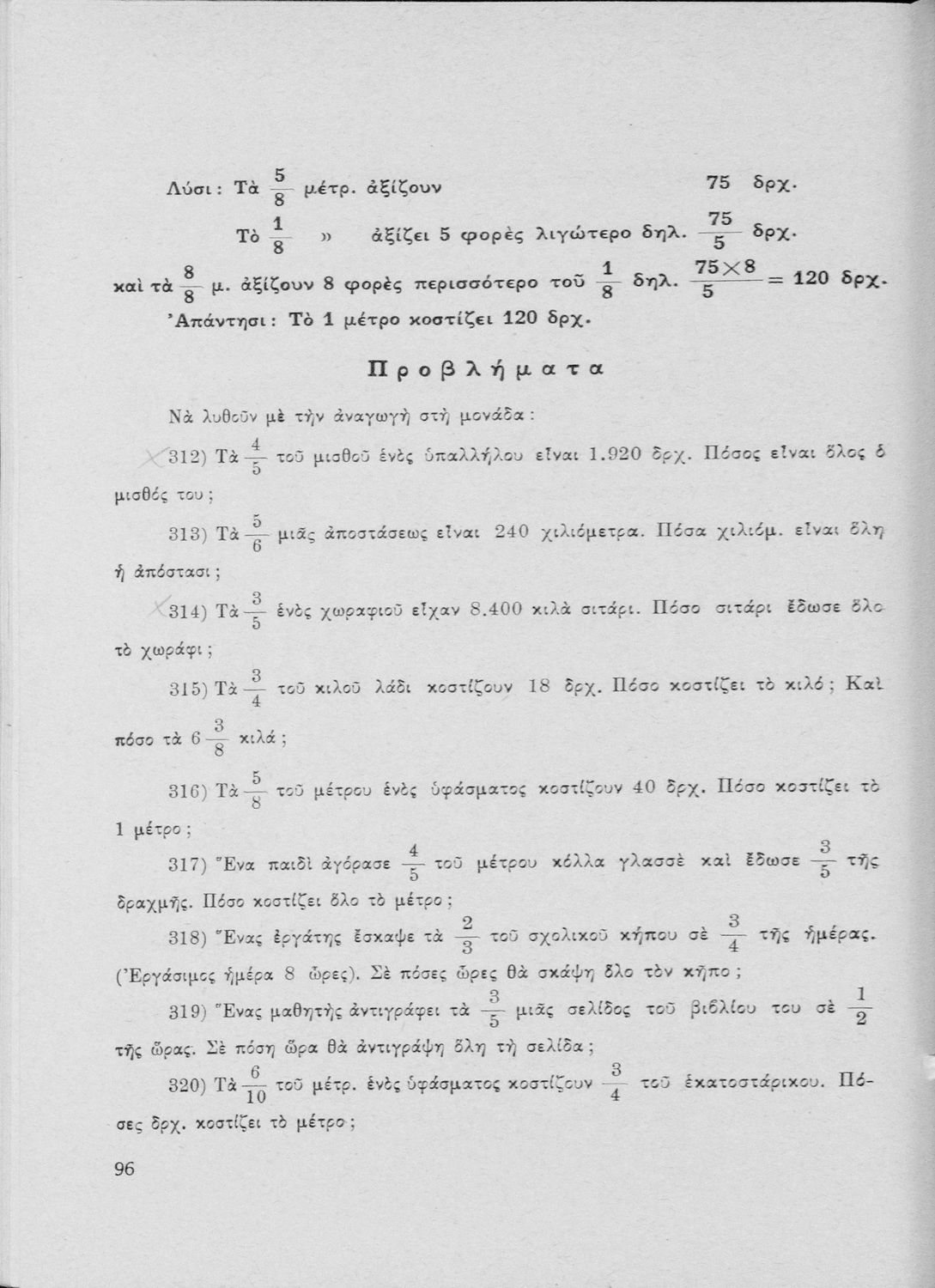 Παρουσίαση περιεχομένου: Μαθητικό βοήθημα Αριθμητικής για τις Ε΄ και ΣΤ΄ Δημοτικού που περιέχει ασκήσεις με επιχειρηματικό προσανατολισμό και εστιάζει στις αριθμητικές πράξεις με κλάσματα και την απλή μέθοδο των τριών.