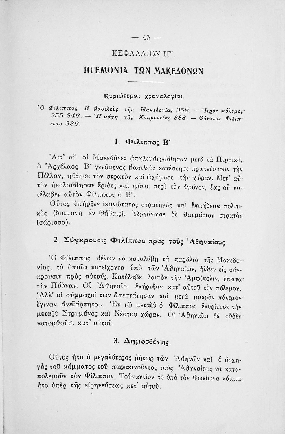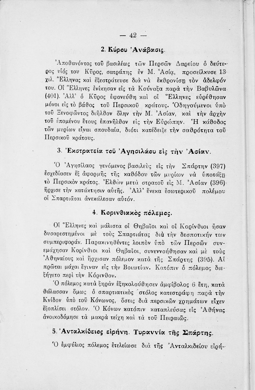 Μαθητικό βοήθημα της Β΄ Γυμνασίου για το μάθημα της Ιστορίας. Το εγχειρίδιο περιέχει περιλήψεις των κεφαλαίων του σχολικού βιβλίου. Ο συγγραφέας ήταν Γυμνασιάρχης.