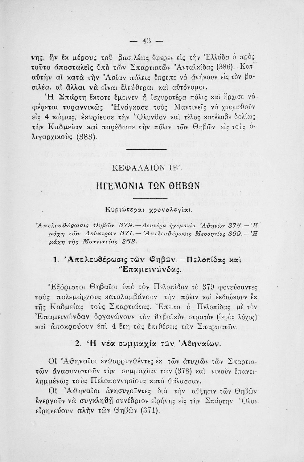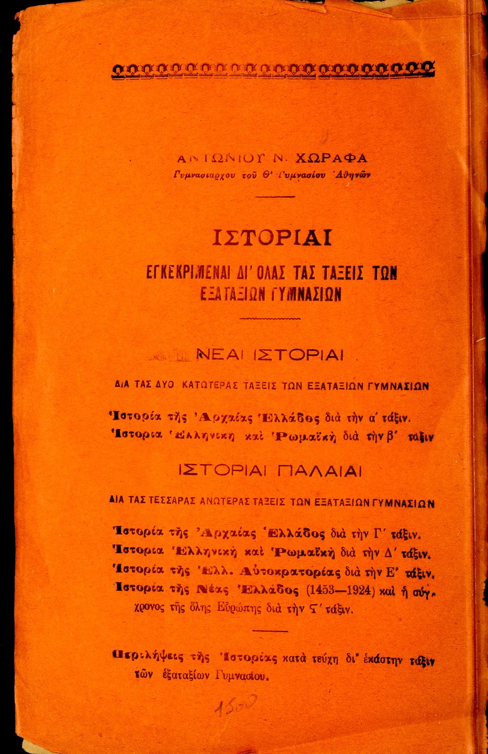 Μαθητικό βοήθημα Ιστορίας. Γ΄ και Δ΄ Δημοτικού Παρθεναγωγείου που καλύπτει το διάστημα από τους προϊστορικούς χρόνους ως τη μάχη της Μαντίνειας
