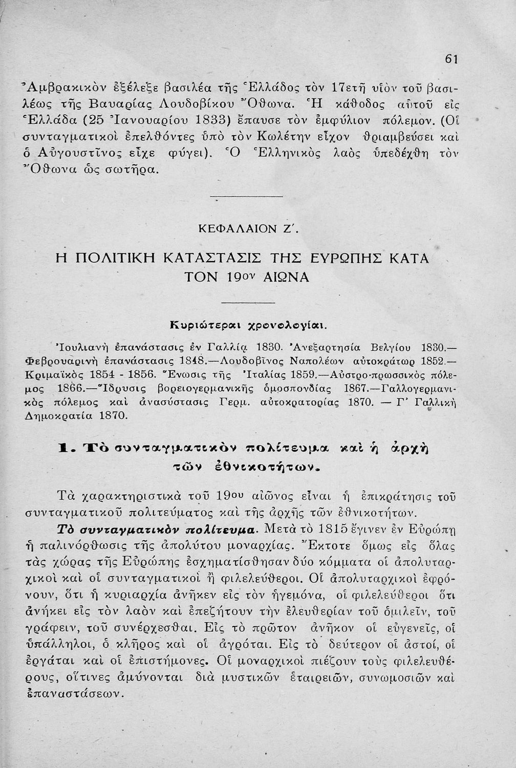 Περιλήψεις της ιστορίας. Ιστορία της νέας Ελλάδος και η σύγχρονος της όλης Ευρώπης. Γυμνασίου Τάξις Έκτη