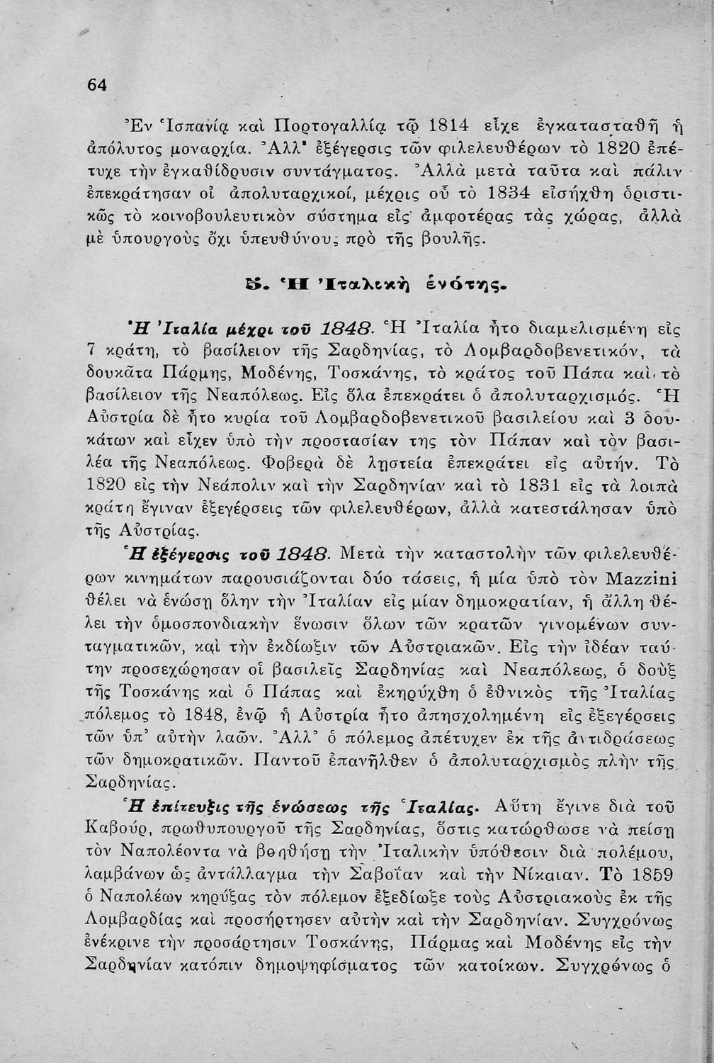 Τίτλος: Περιλήψεις της ιστορίας. Ιστορία της νέας Ελλάδος και η σύγχρονος της όλης Ευρώπης. Γυμνασίου Τάξις Έκτη