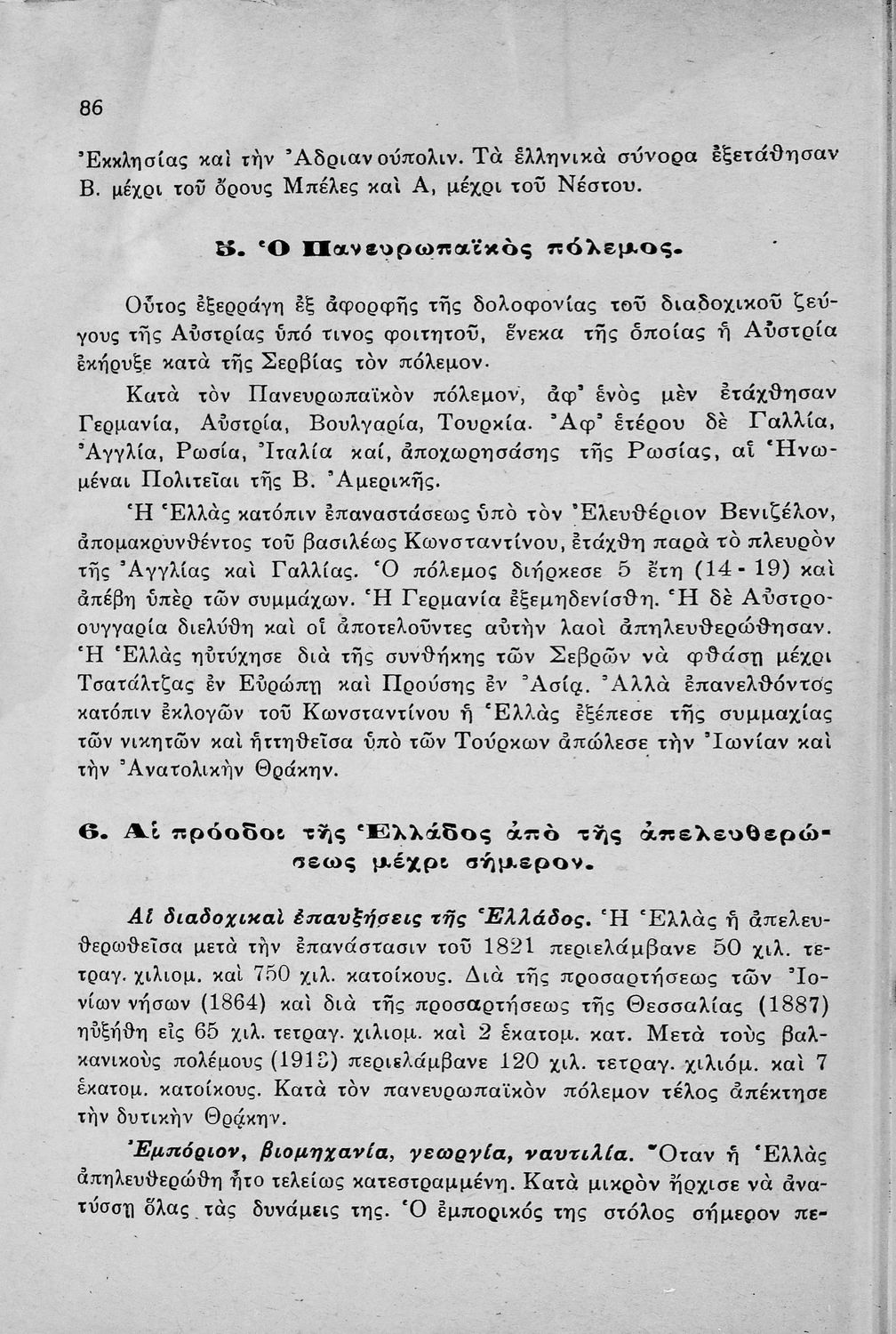Μαθητικό βοήθημα της ΣΤ΄ Γυμνασίου για το μάθημα της Ιστορίας. Περιέχει περιλήψεις και ερμηνευτικά σχόλια για τα κεφάλαια της ιστορίας του σχολικού εγχειριδίου. Ο συγγραφέας ήταν Γυμνασιάρχης.