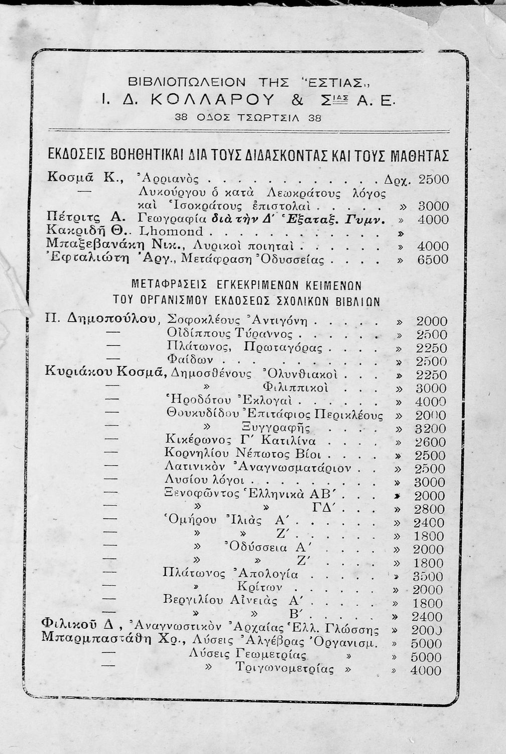 Εκδότης: Ιωάννης Δ. Κολλάρος και ΣΙΑ, Βιβλιοπωλείο της "Εστίας" Έτος έκδοσης: 1946 Τόπος έκδοσης: Αθήνα Έκδοση: 7η |