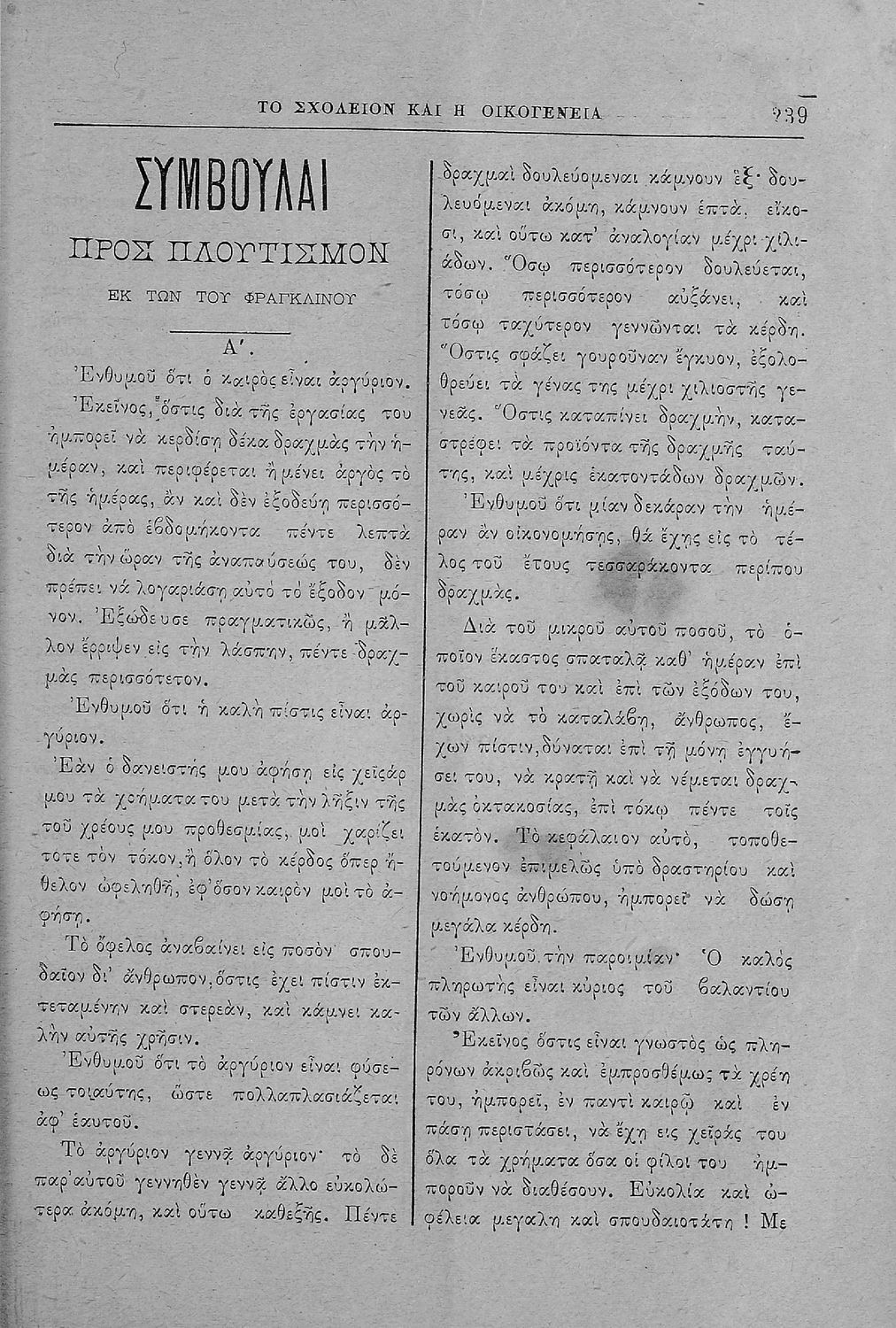 Περιέχει τα τεύχη του μηνιαίου παιδαγωγικού περιοδικού Το Σχολείον και η Οικογένεια που εκδόθηκαν από το Νοέμβριο του 1899 ως τον Οκτώβριο του 1903.