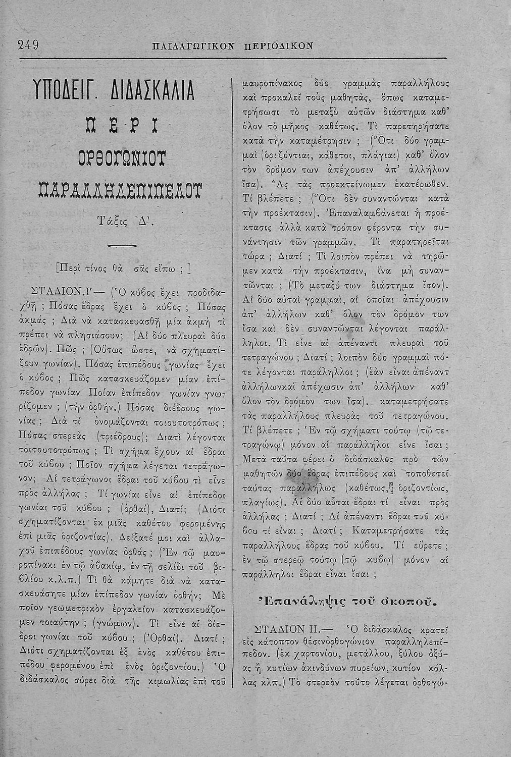 Τάξη:  Γ' Ελληνικού Σχολείου / Α' Αστικού Σχολείου Θηλέων
