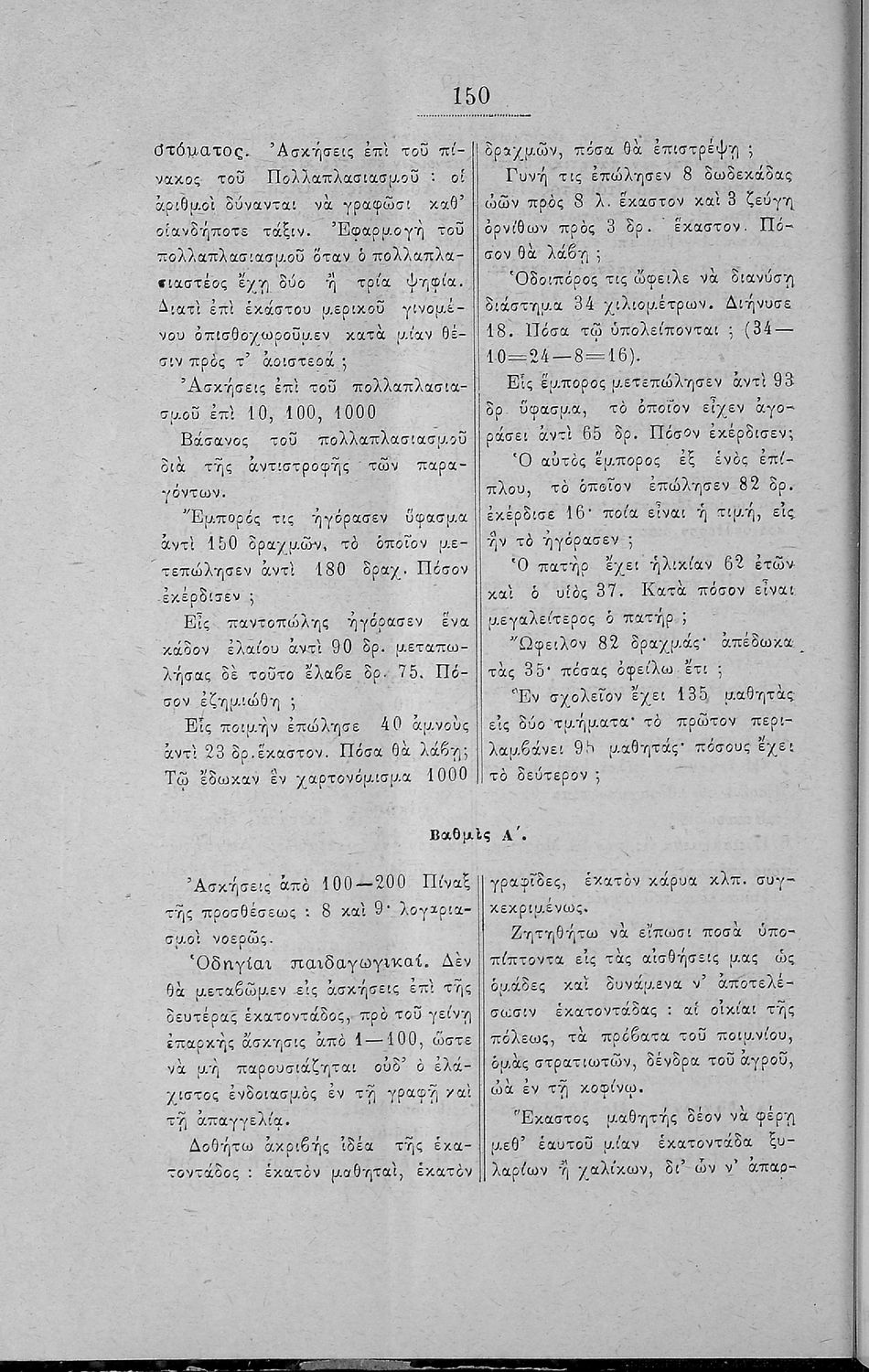 Τάξη:  Γ' Ελληνικού Σχολείου / Α' Αστικού Σχολείου Θηλέων