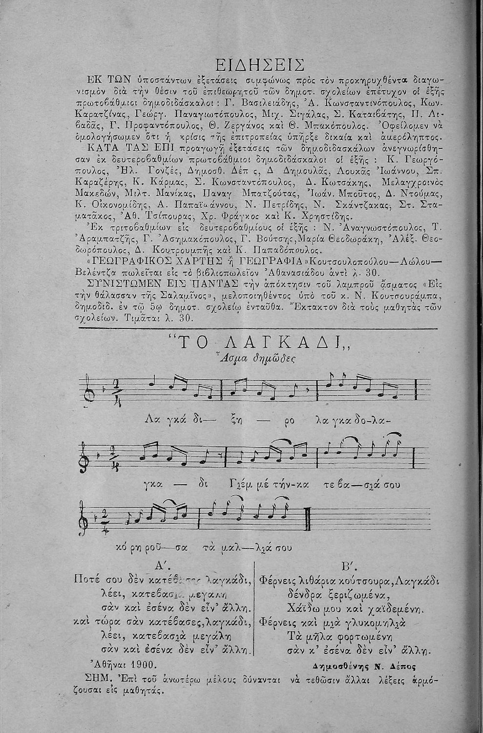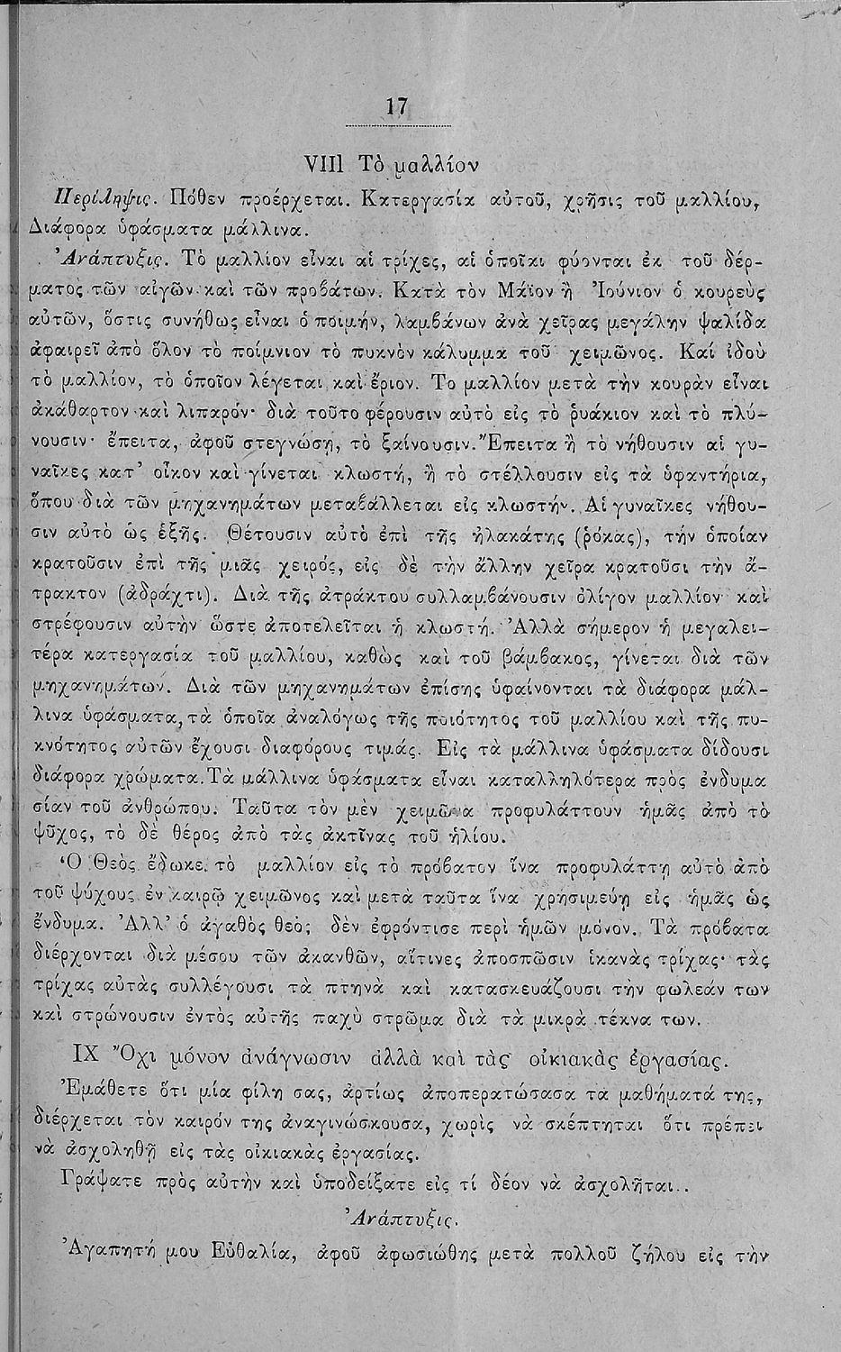 Σχολικό εγχειρίδιο Νέων Ελληνικών Γ' Ελληνικού Σχολείου και Α΄ Αστικού Σχολείου των Θηλέων που περιλαμβάνει ποιήματα και πεζά Ελλήνων συγγραφέων και δημοτικά τραγούδια εμπνευσμένα από την σύγχρονη ελληνική ...