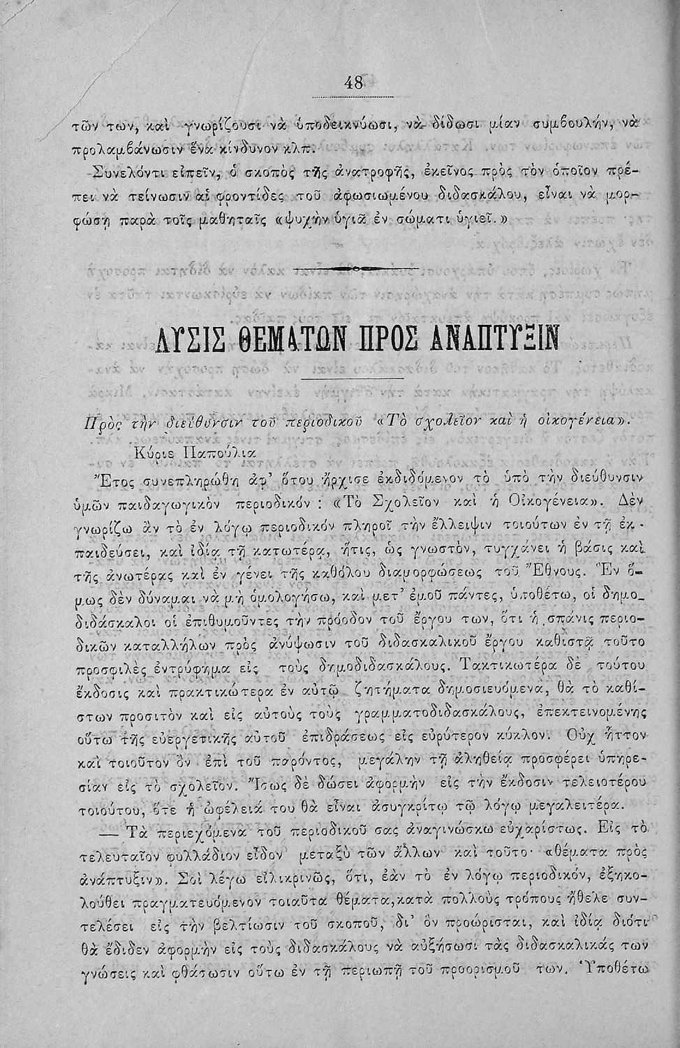 Γλώσσα: Καθαρεύουσα