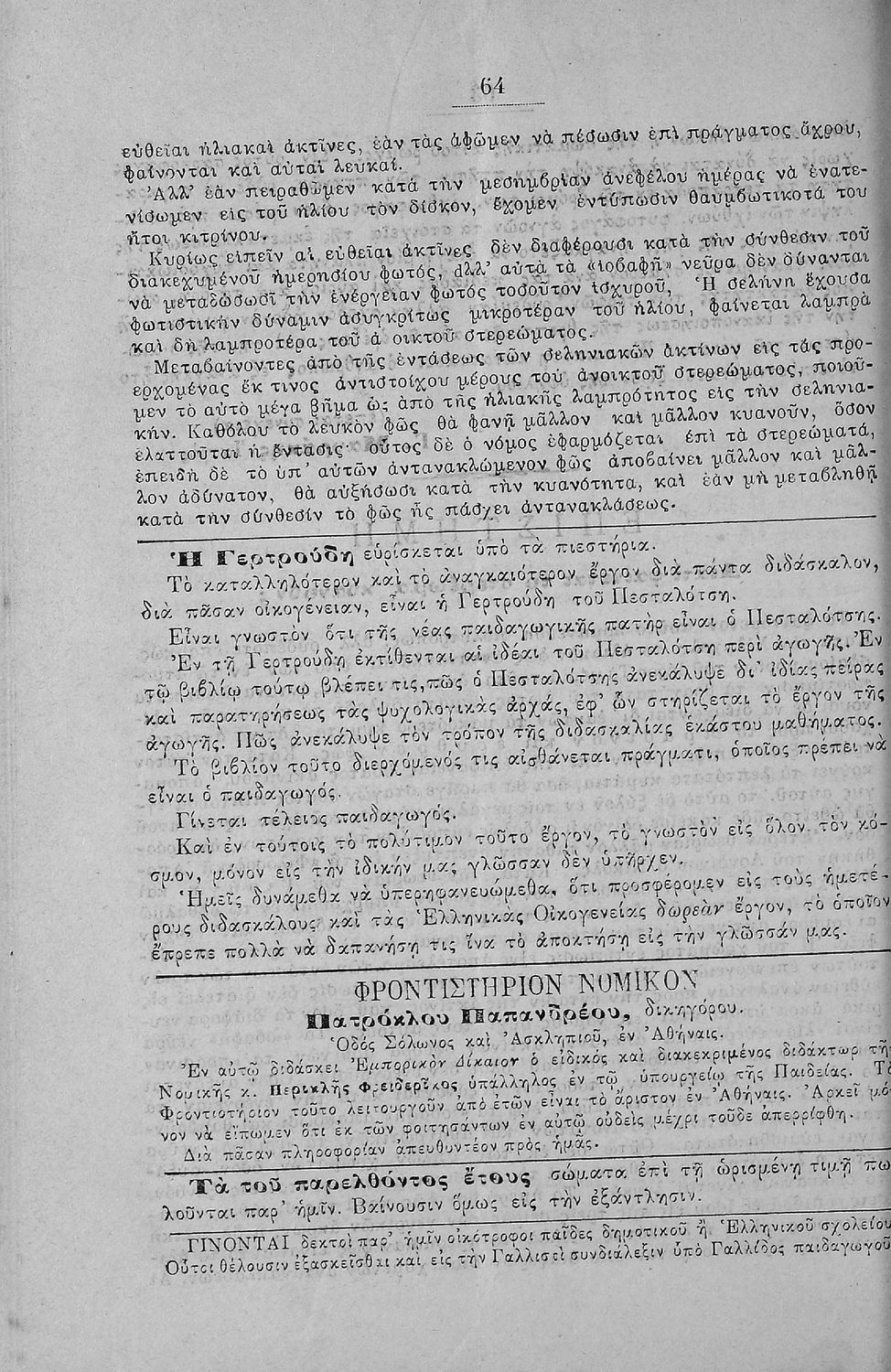 Τάξη:  Γ' Ελληνικού Σχολείου / Α' Αστικού Σχολείου Θηλέων