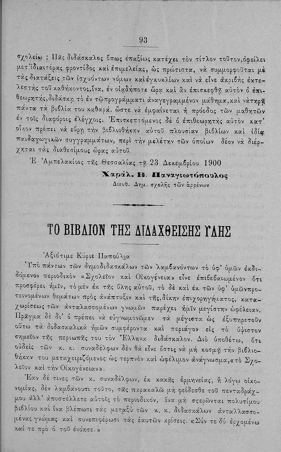 Σχολικό εγχειρίδιο Νέων Ελληνικών Γ' Ελληνικού Σχολείου και Α΄ Αστικού Σχολείου των Θηλέων που περιλαμβάνει ποιήματα και πεζά Ελλήνων συγγραφέων και δημοτικά τραγούδια εμπνευσμένα από την σύγχρονη ελληνική ...